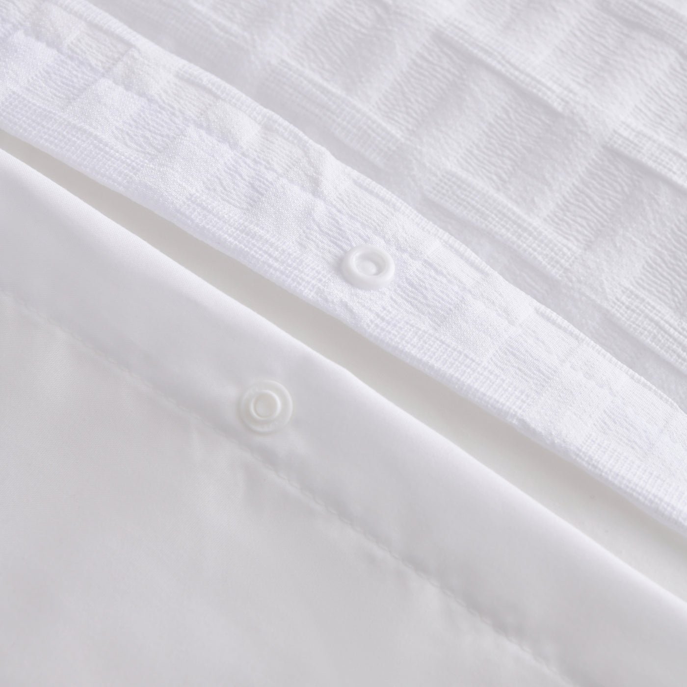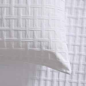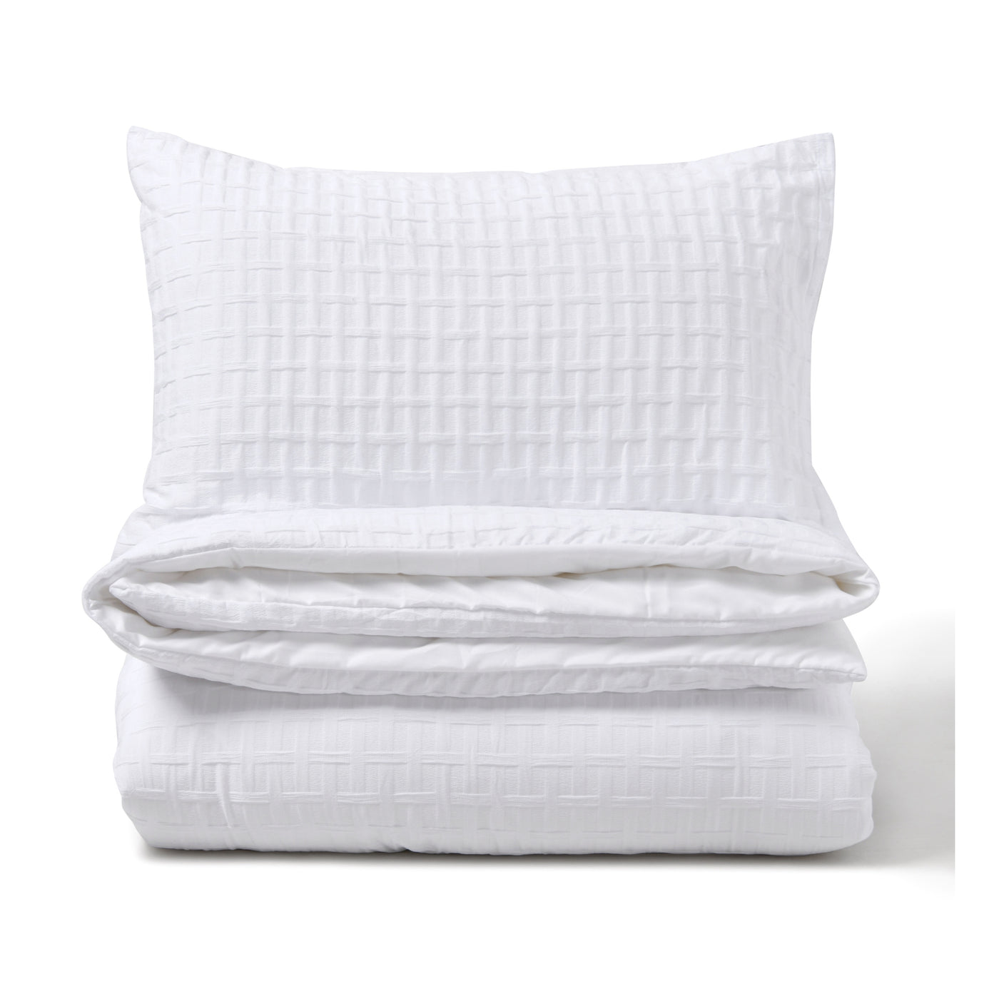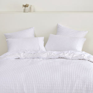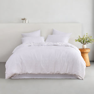 Bring understated elegance to your bedroom with the Aubrey Jacquard Quilt Cover Set. Featuring a timeless basketweave design, this quilt cover showcases a classic woven texture that adds subtle depth and dimension to your space. The jacquard pattern is woven directly into the fabric delivering a premium look that feels refined yet effortless.
