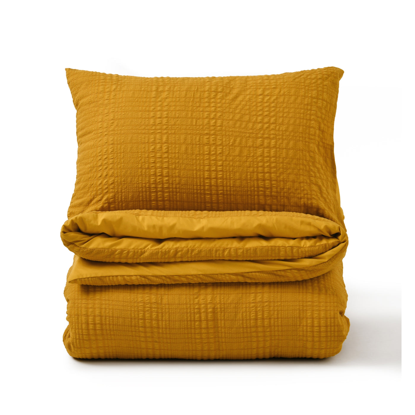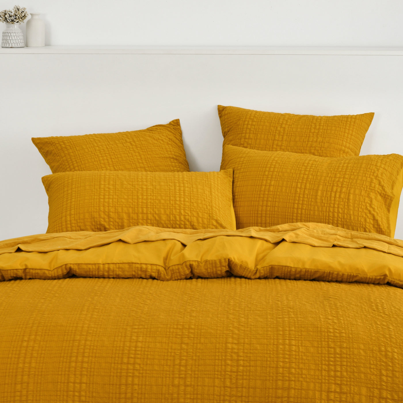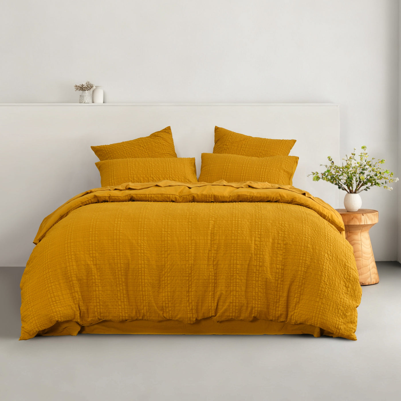 Elevate your bedroom with understated texture and rich colour using our Ellis Seersucker Quilt Cover Set. The Ellis quilt cover and matching pillowcase(s) features a subtle two-toned seersucker crinkle for visual depth and dimension. The textured top is paired with a smooth microfibre reverse that's buttery soft against the skin.Features• Textured two-toned seersucker• Buttery soft microfibre reverse• Machine washable, quick drying and easy care• No ironing required thanks to the subtle texture• Designed to coordinate with the Dreamaker Superfine rangeSizesSingle - Quilt Cover 140 x 210cm | 1 Pillowcase 48 x 73cmKing Single - Quilt Cover 160 x 210cm | 1 Pillowcase 48 x 73cmDouble - Quilt Cover 180 x 210cm | 2 Pillowcases 48 x 73cmQueen - Quilt Cover 210 x 210cm | 2 Pillowcases 48 x 73cmKing - Quilt Cover 245 x 210cm | 2 Pillowcases 48 x 73cmSuper King - Quilt Cover 270 x 240cm | 2 Pillowcases 48 x 73cmMaterialMicrofibreCare InstructionsWash separately before first use. Cold gentle machine wash with simlar colours. Colour safe detergent recommended. Tumble dry low. Iron on reverse only. Do not bleach. Do not dry clean.Made in China.