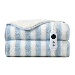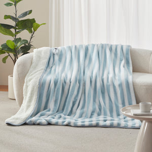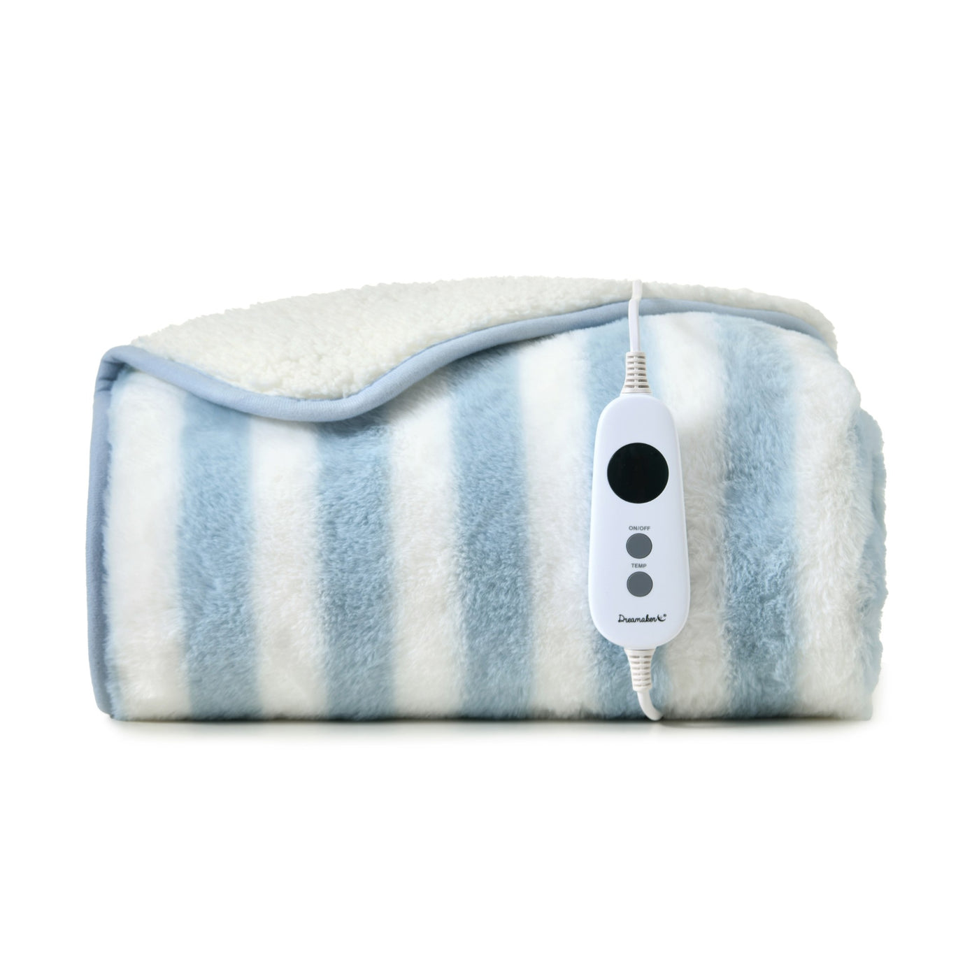 Snuggle up in style with the Dreamaker Linea Striped Faux Fur and Sherpa Heated Throw. Featuring plush striped faux fur on one side, and our signature cosy sherpa fleece on the other, the Linea gives you two luxe textures made for curling up, staying warm and looking good doing it.