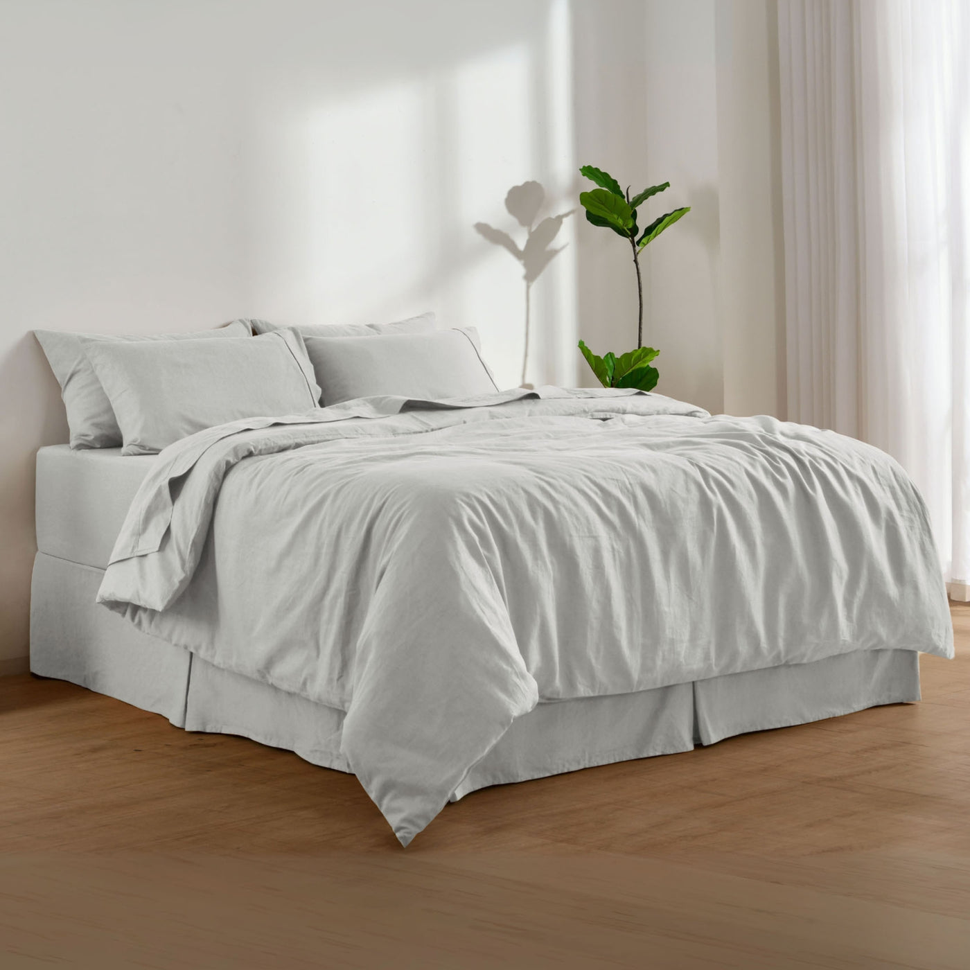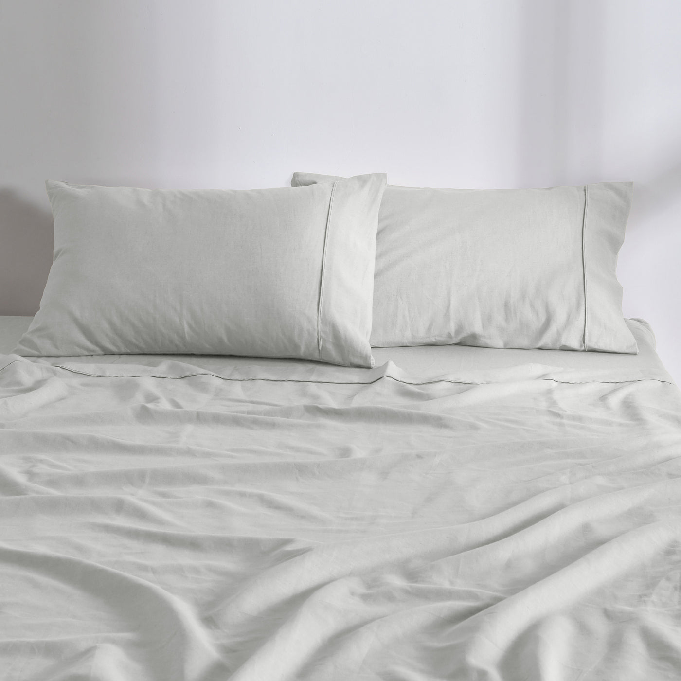 Sleep in airy comfort on our blended linen cotton sheet set, perfect for all-year use. We've combined the natural softness of cotton with linen's durability and breathability to create a lightweight blended fabric to give your bed a comfortable style that gets softer with every wash.