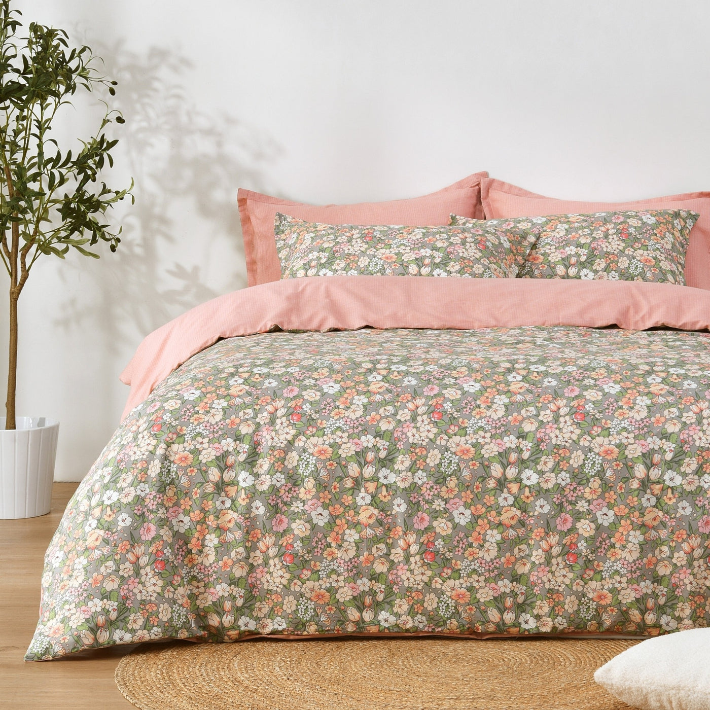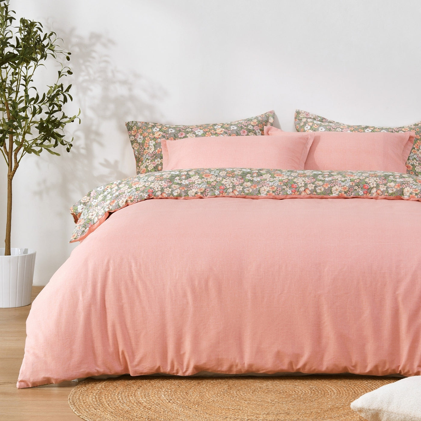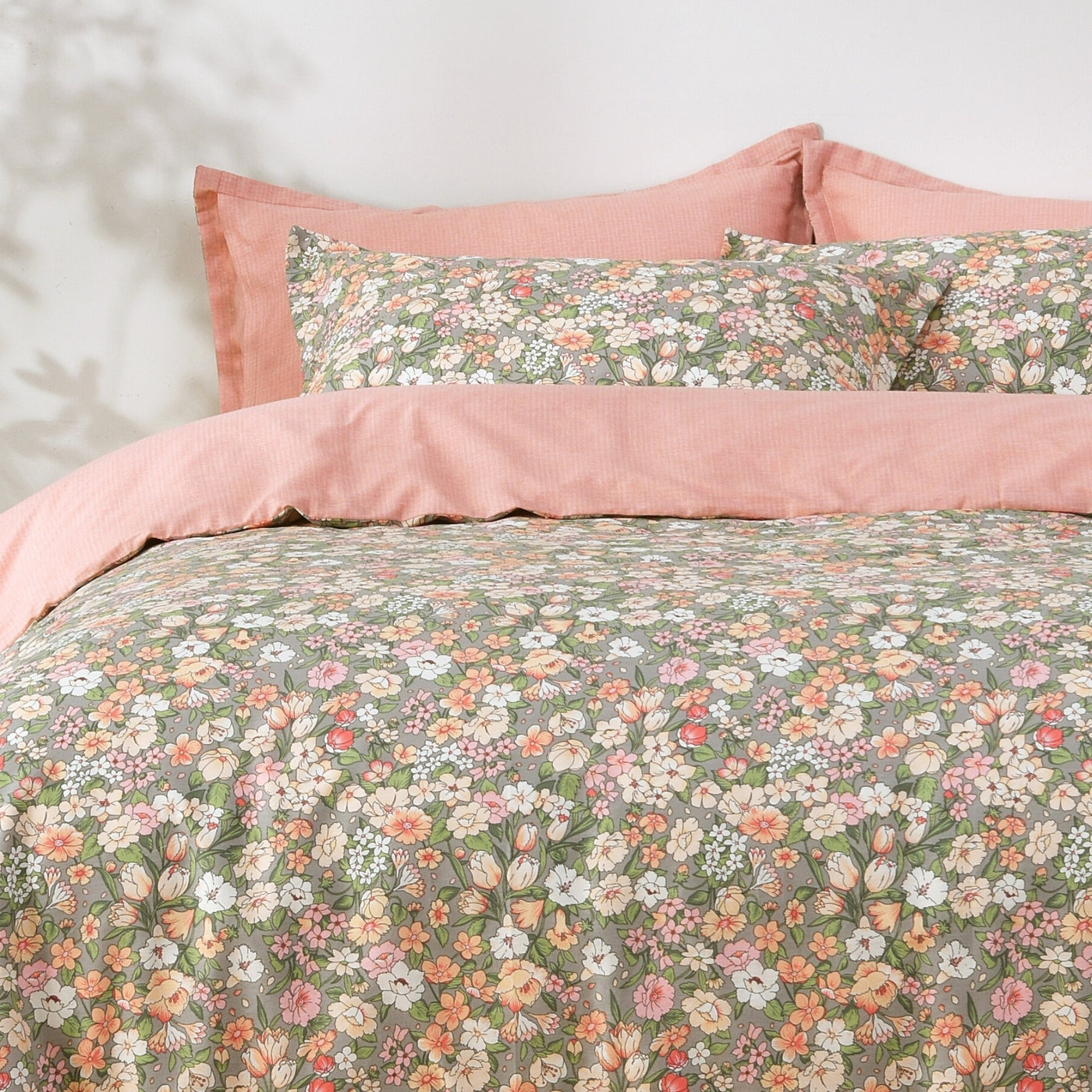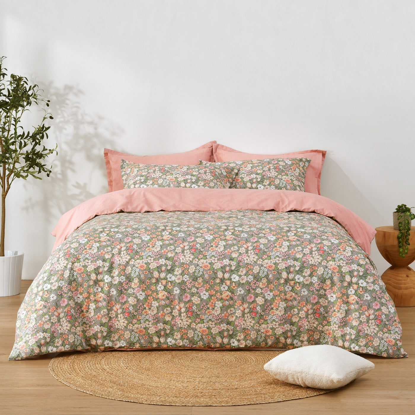 Enjoy the refreshing style of our Mayfield Reversible Cotton Quilt Cover Set - featuring a cottage-style floral paired with a white and soft blue-grey botanical reverse. Made from breathable 100% cotton, Dreamaker's reversible printed quilt cover sets feature two unique prints on both sides of the quilt cover, along with matching pillowcases, providing you with two styles in one.Features• 100% cotton for softness and breathability• Reversible design gives you two styles in one• Classic botanical meets ditsy florals• Machine washable for simple care• Includes matching quilt cover and pillowcases (1 for S & KS, 2 for D, Q, K)SizesSingle - Quilt Cover 140 x 210cm | 1 Pillowcase 48 x 73cmKing Single - Quilt Cover 160 x 210cm | 1 Pillowcase 48 x 73cmDouble - Quilt Cover 180 x 210cm | 2 Pillowcases 48 x 73cmQueen - Quilt Cover 210 x 210cm | 2 Pillowcases 48 x 73cmKing - Quilt Cover 245 x 210cm | 2 Pillowcases 48 x 73cmMaterials100% cottonCare InstructionsWarm machine wash separately before use. Do not bleach. Do not tumble dry. Line dry without delay. Warm iron if required. Do not dry clean.
