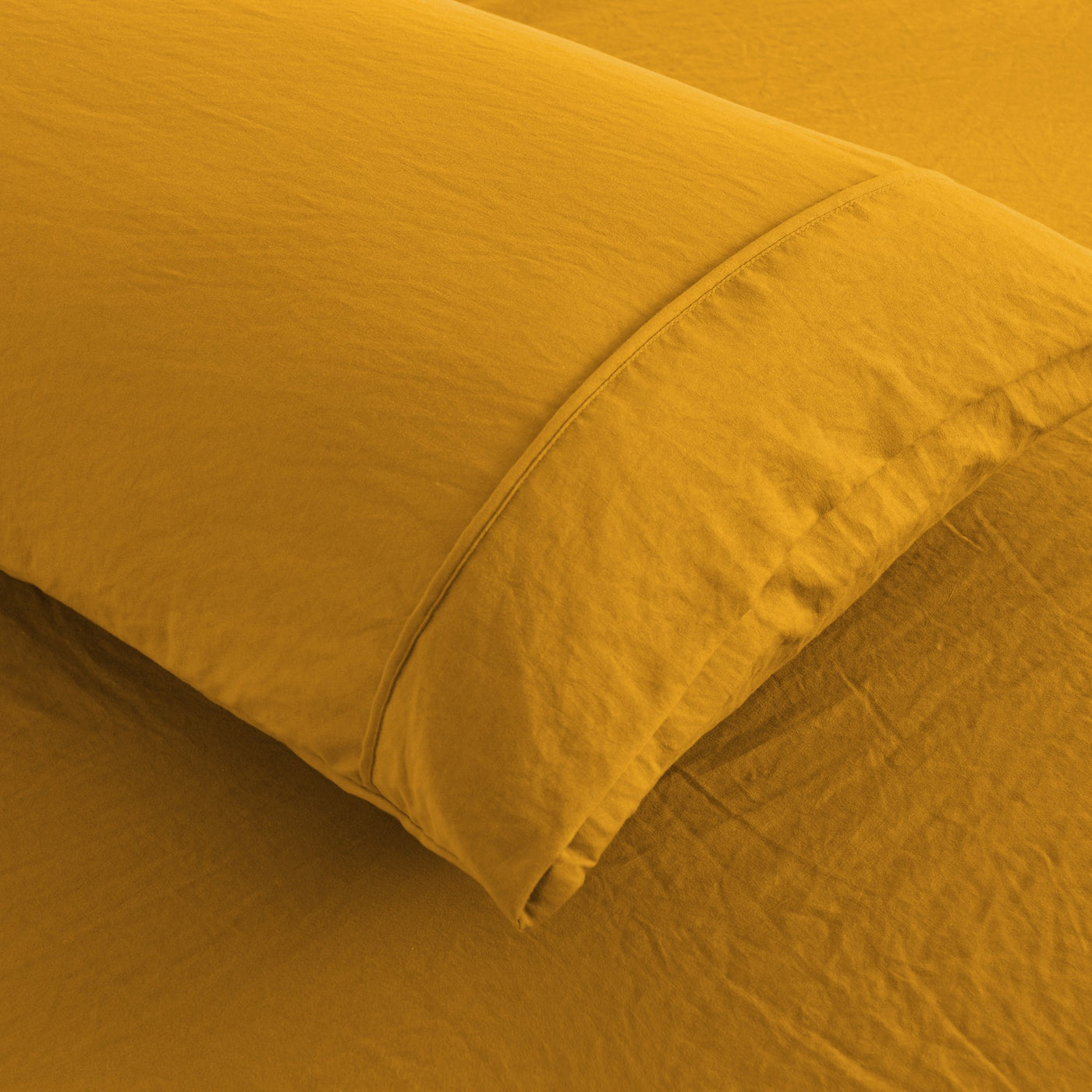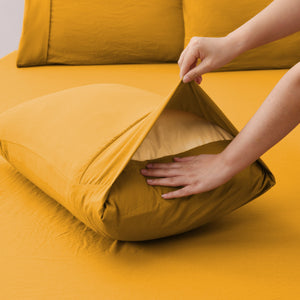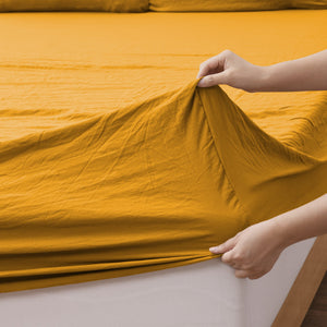 Superfine Washed Microfibre Combo Fitted Sheet Set Mustard