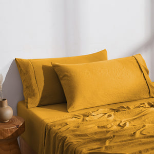 Superfine Washed Microfibre King Pillowcase Twin Pack - Mustard