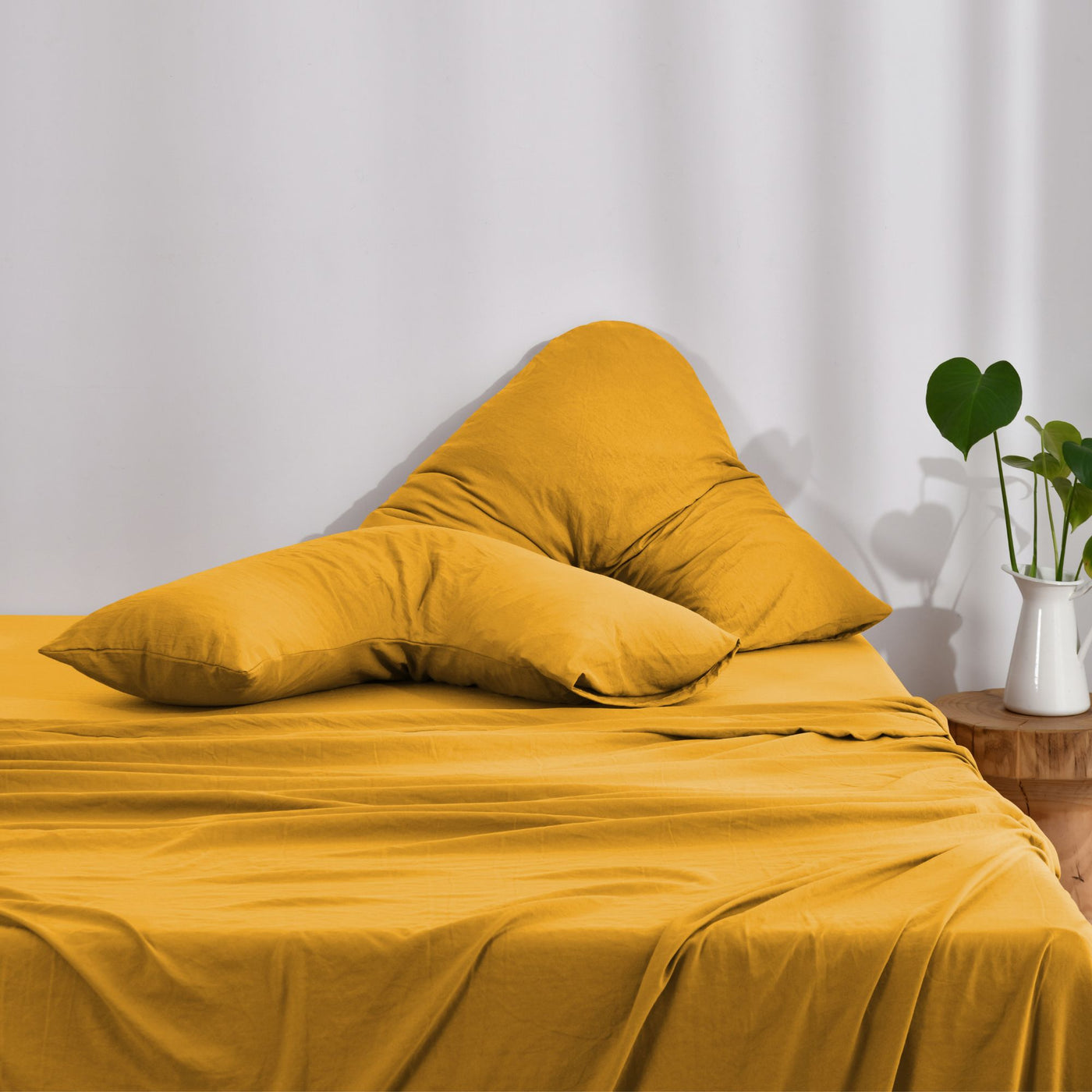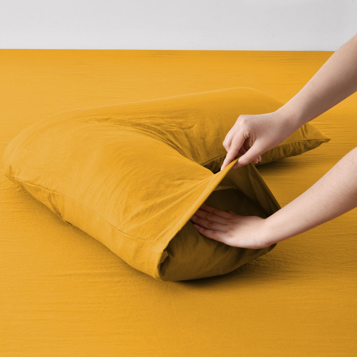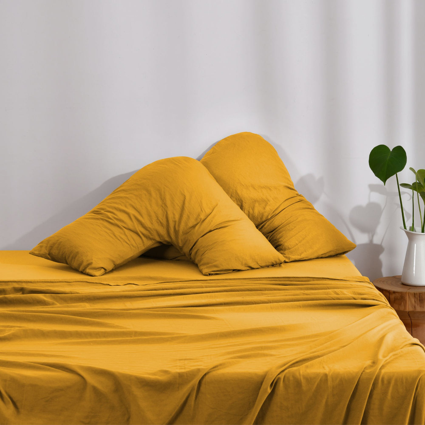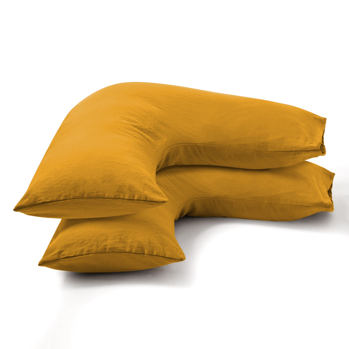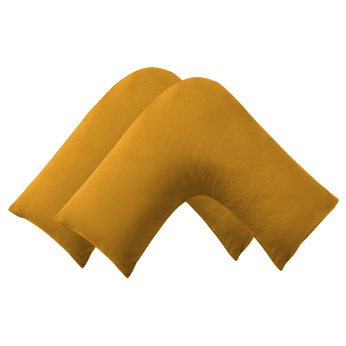 Superfine Washed Microfibre V-Shape Pillowcase Twin Pack - Mustard
