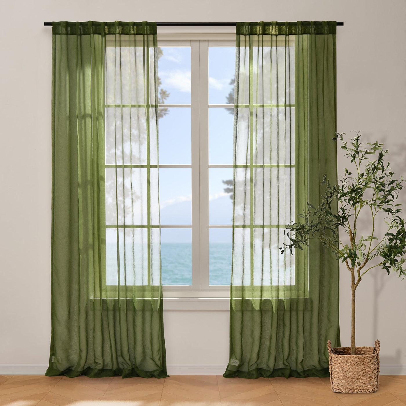 Kirra Sheer Concealed Tab Top Curtain Twin Pack Olive