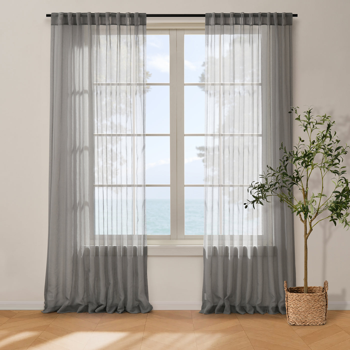 Inspired by the interplay of light, shadow, and natural tones, the Cadence & Co. Kirra Sheer Concealed Tab Top Curtain Panels give a sense of airiness and architectural movement to your space. Woven with a subtle, textured finish, these sheer panels gently diffuse light while adding depth and softness.