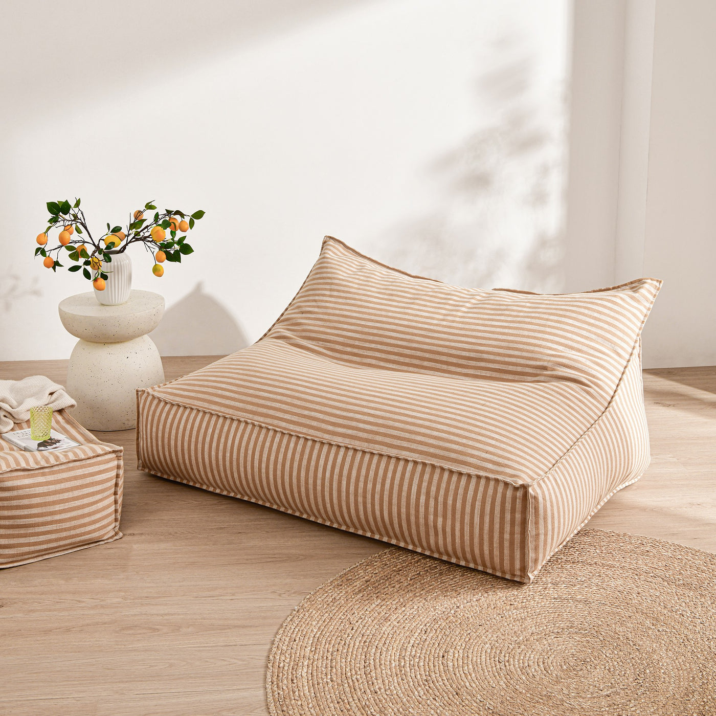 Redefine the way you relax with the Oscar Faux Linen Two-seater Bean Bag Lounger. Designed with both style and comfort in mind, its extra-wide, supportive shape is great for stretching out or sharing with a friend. Our striped double bean bag lounger cover is crafted in subtle, textured faux linen, and finished with refined French seams and a hidden zip. Our cover-only design lets you customise the filling to your ideal level of comfort.