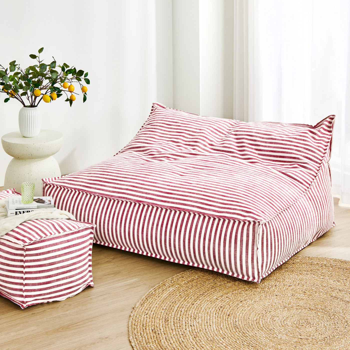 Oscar Faux Linen Two Seater Bean Bag Lounge Cover Red