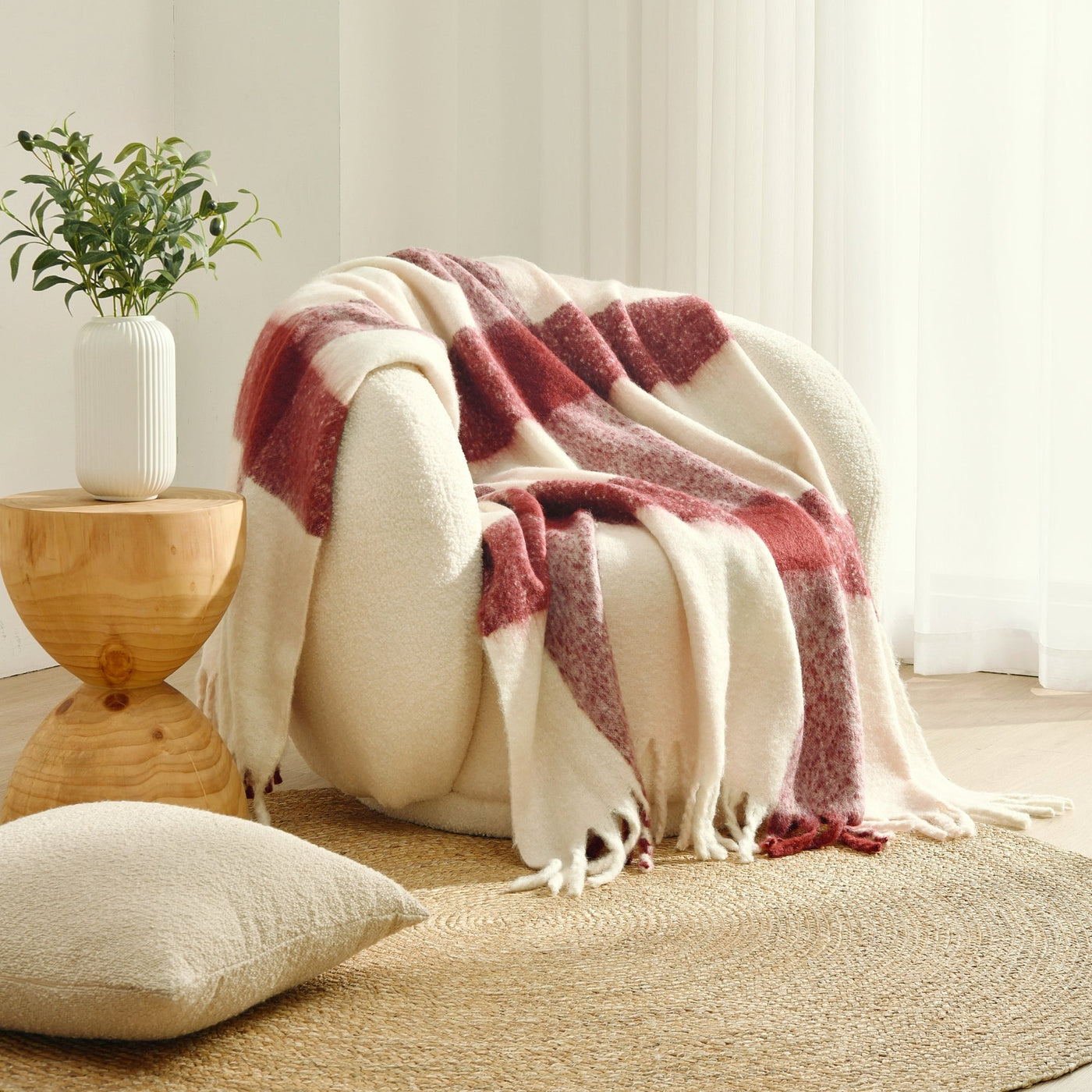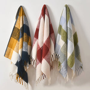Enjoy the play of colour, texture and warmth with the Sinclair Faux Mohair Check Throw Blanket. Designed to drape across your sofa, armchair or favourite reading nook, the Sinclair throw is woven from the softest faux mohair in a modern farmhouse-inspired large check pattern.Features• Large checks in multi-seasonal colours• Luxuriously soft faux mohair• Fringed edges for a textured finish• Lightweight warmth for layering• Machine washable for easy care• Perfect for giftingSize130 x 170cmMaterialPolyesterCare InstructionsCold machine wash with similar colours. Do not bleach. Do not rub or wring. Do not dry clean. Do not iron. Do not tumble dry.Designed in AustraliaMade in China