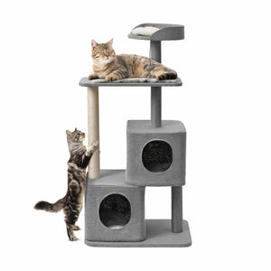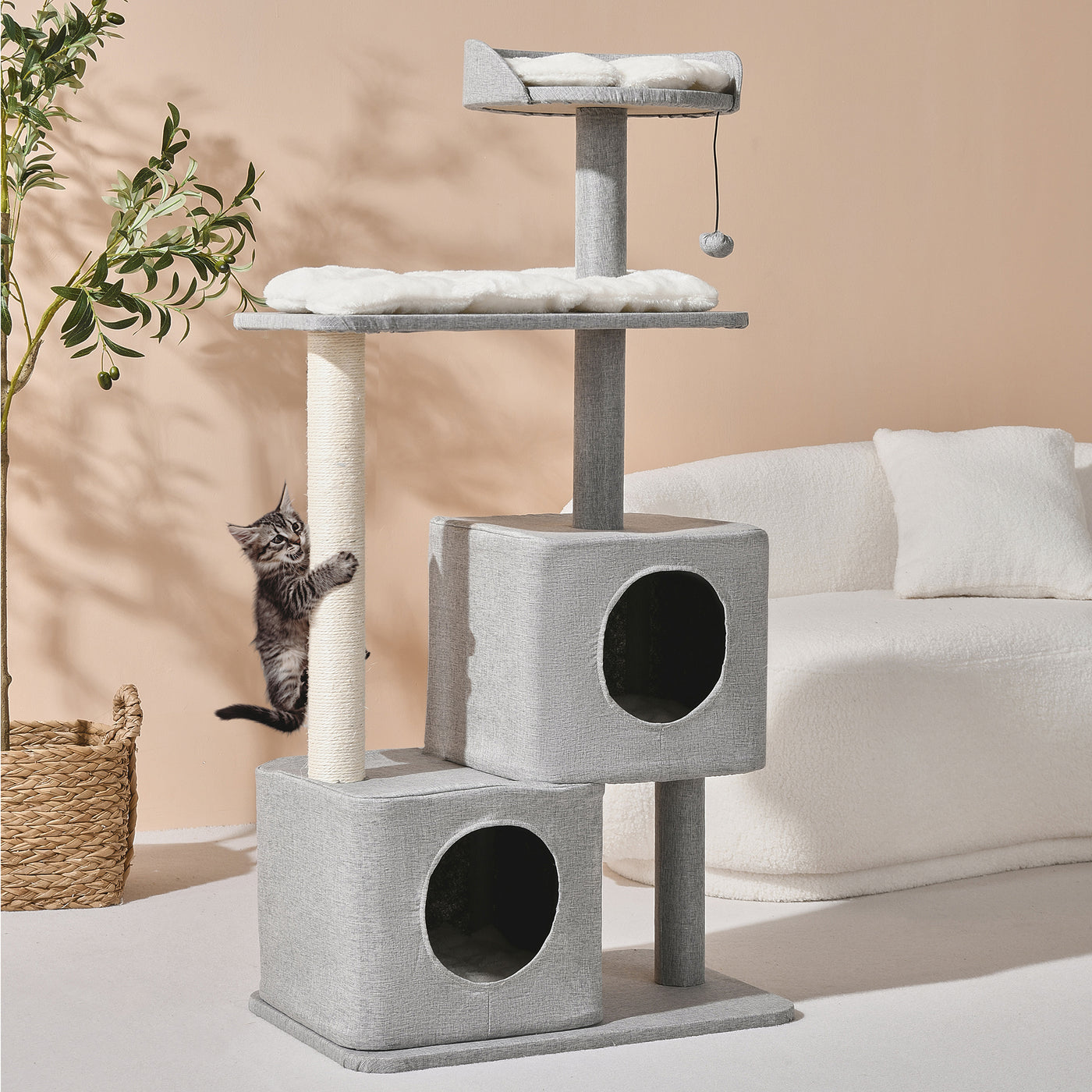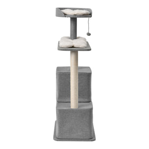 - Wabi Sabi Double Cubby Cat Tree Scratcher in Faux Linen Grey
