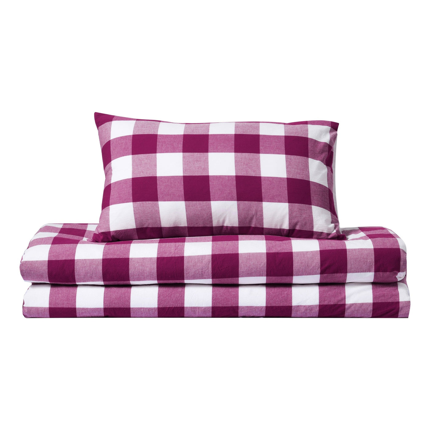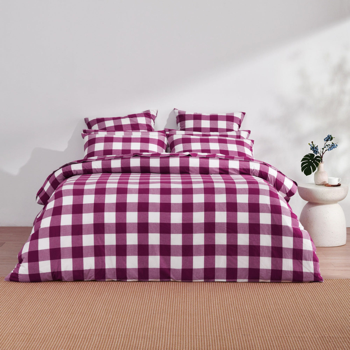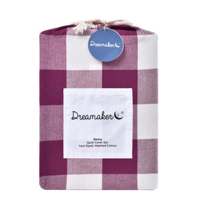 Remy Washed Cotton Yarn Dyed Check Quilt Cover Set Berry