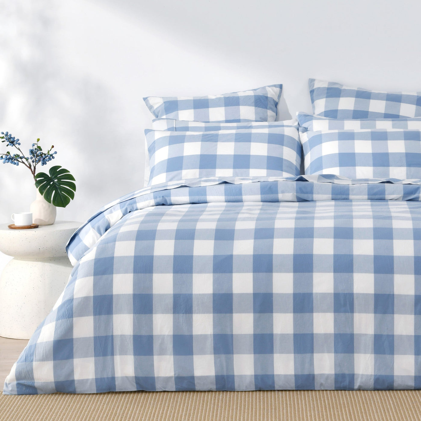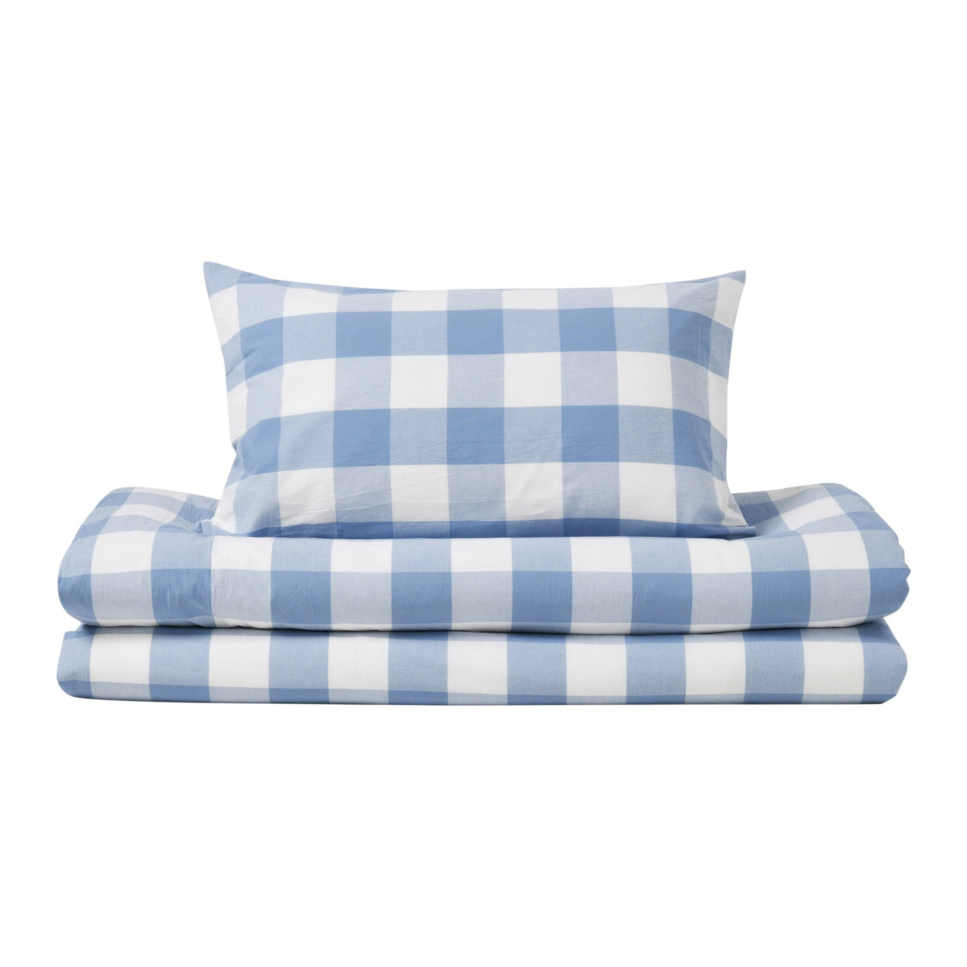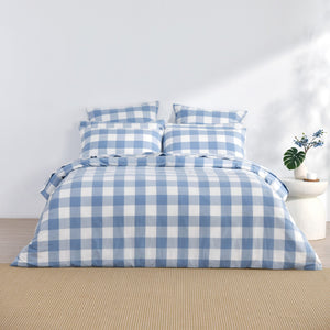 Remy Washed Cotton Yarn Dyed Check Quilt Cover Set Cornflower