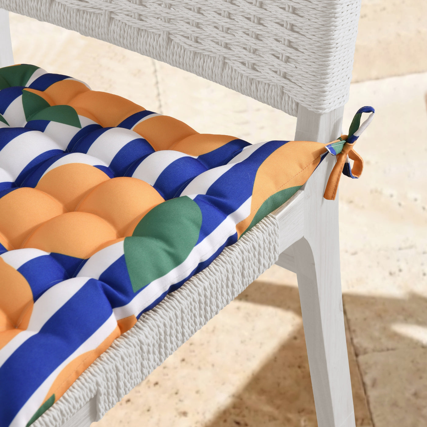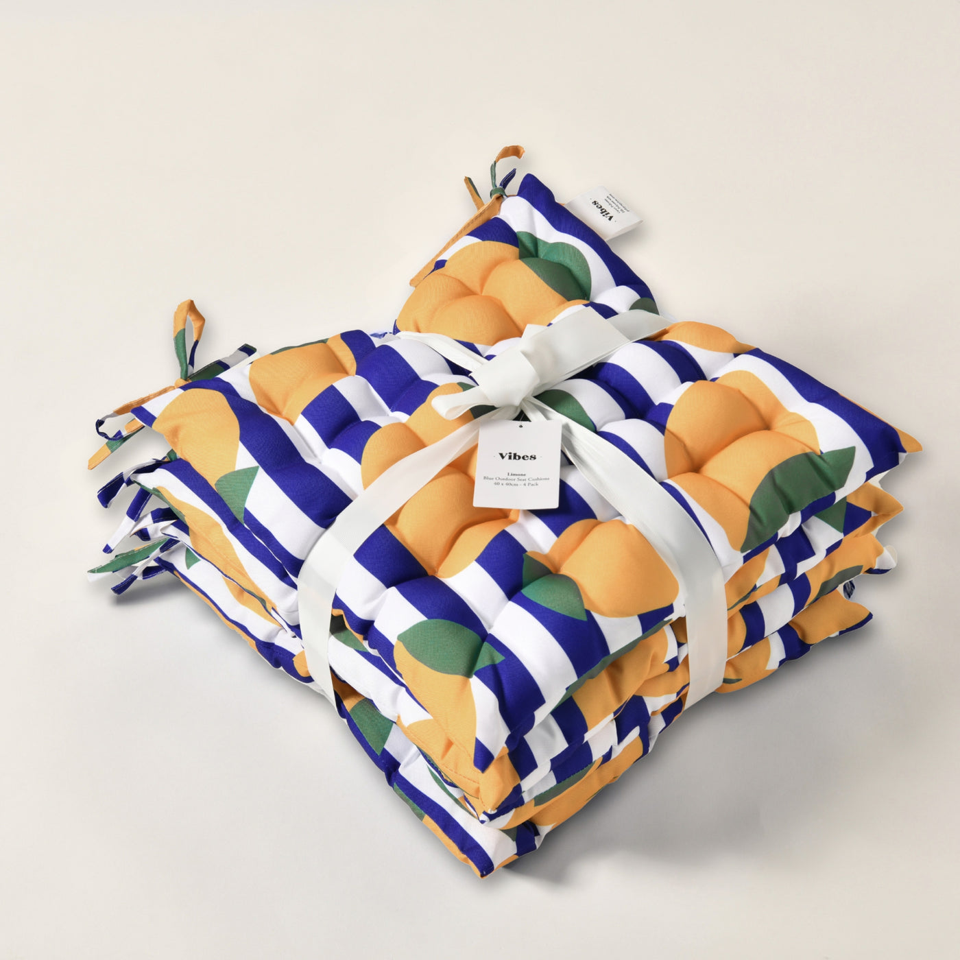 Features• Set of 4 seat cushions• 5cm padding for extra comfort• UV-resistant for long-lasting colour• Water-resistant and spill-resistant easy-care fabric• Corner ties for secure placement• Pairs perfectly with our outdoor cushions