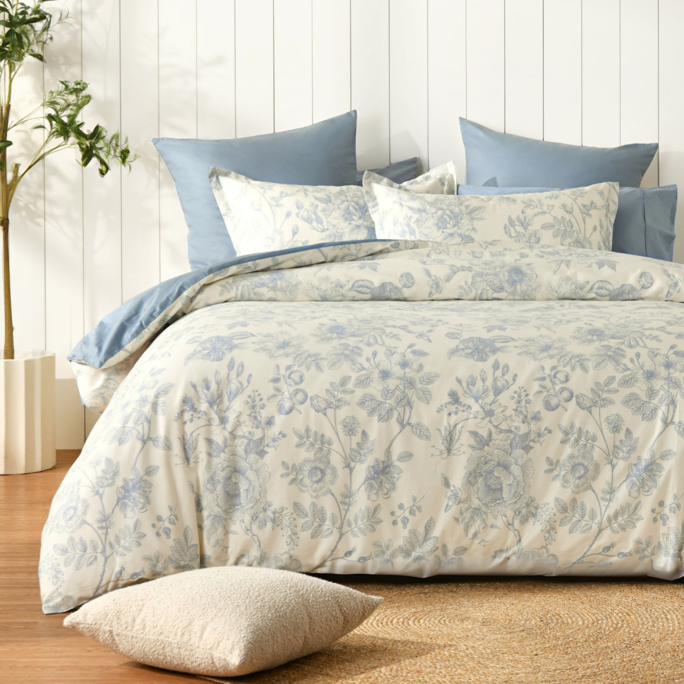 Enjoy the refreshing style of our Odette reversible cotton European pillowcases in a twin pack - featuring a cottage style floral paired with soft blue printed reverse. Made of breathable, 100% cotton, Dreamaker's reversible pillowcases give you two unique prints on both sides, giving you two styles in one.Features• Twin pack includes two European pillowcases• Reversible design gives you two styles in one• 100% cotton for softness and breathability• Machine washable for simple care• OEKO-TEX Standard 100 CertifiedSizeEuropean Pillowcase - Twin Pack - 65 x 65cmMaterials100% cottonCare InstructionsWarm machine wash separately before use. Do not bleach. Do not tumble dry. Line dry without delay. Warm iron if required. Do not dry clean.Made in China.