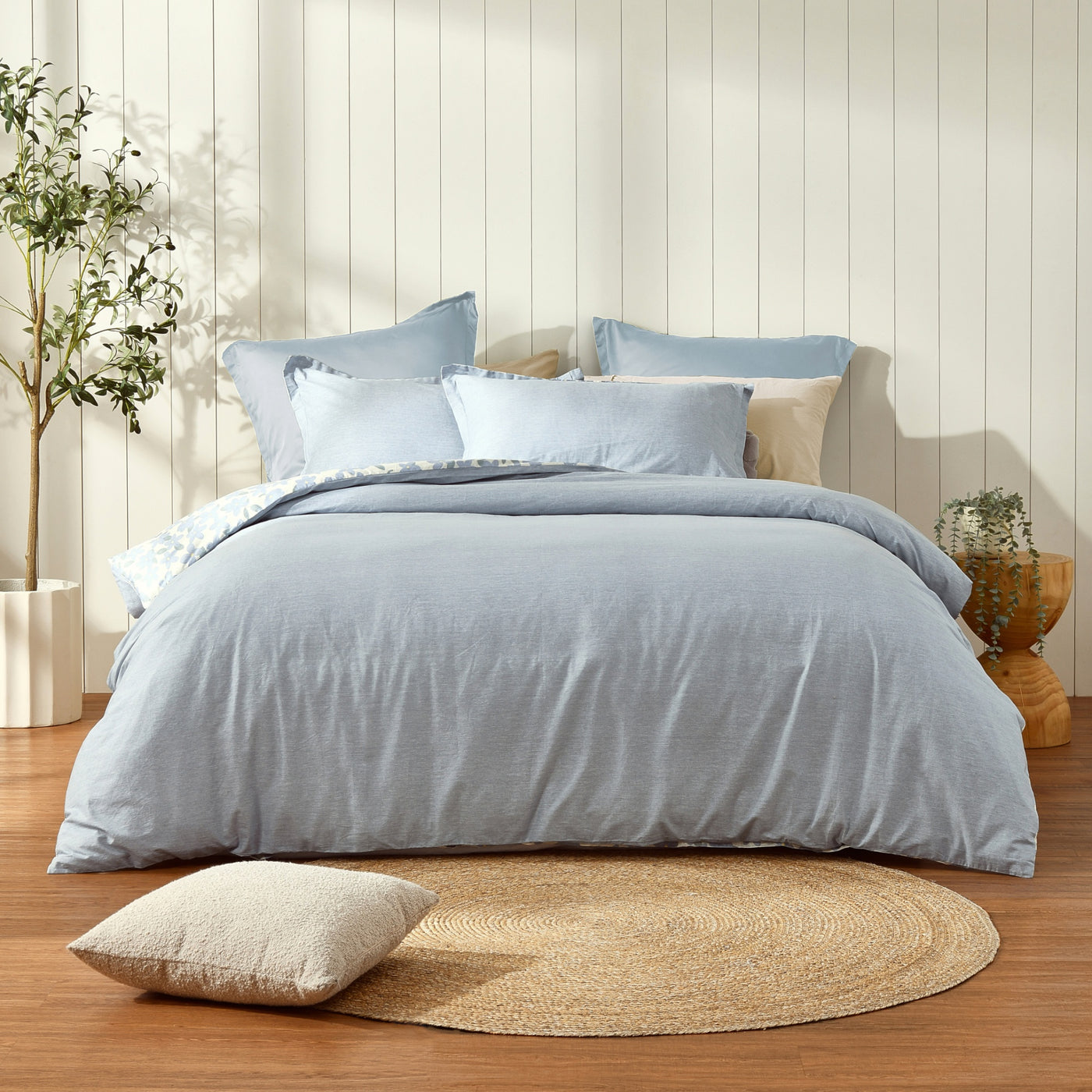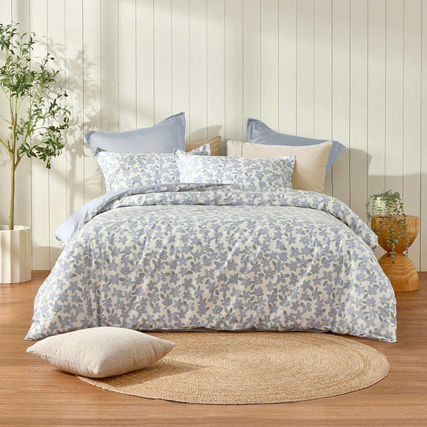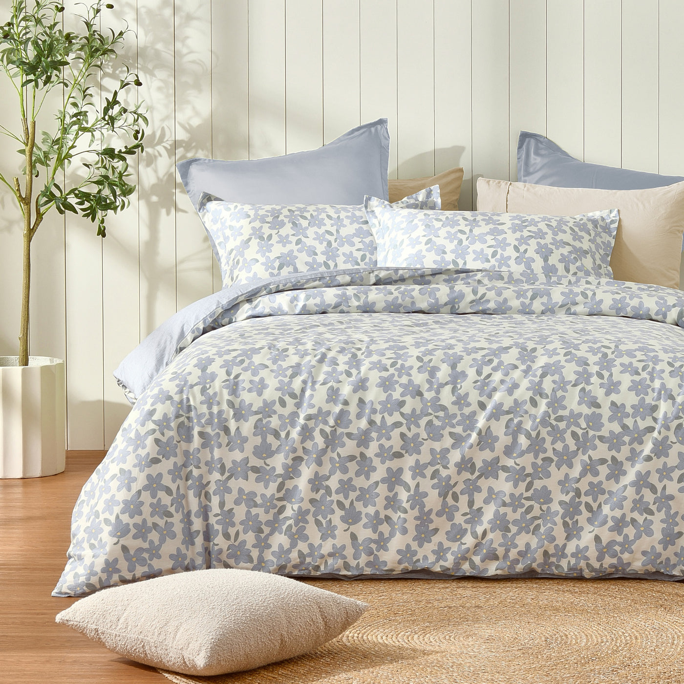 Refresh your bed with our Thirri reversible cotton quilt cover set - featuring an artsy floral print paired with subtle marle-style print. Made of breathable, 100% cotton, Dreamaker's reversible printed quilt cover sets have two unique prints on both sides of the quilt cover and matching pillowcases, giving you two styles in one.Features• Set includes matching quilt cover and pillowcases (1 for S & KS, 2 for D, Q, K)• Reversible design gives you two styles in one• 100% cotton for softness and breathability• Machine washable for simple care• OEKO-TEX Standard 100 Certified - free from harmful substancesSizesSingle - Quilt Cover 140 x 210cm | 1 Pillowcase 48 x 73cmKing Single - Quilt Cover 160 x 210cm | 1 Pillowcase 48 x 73cmDouble - Quilt Cover 180 x 210cm | 2 Pillowcases 48 x 73cmQueen - Quilt Cover 210 x 210cm | 2 Pillowcases 48 x 73cmKing - Quilt Cover 245 x 210cm | 2 Pillowcases 48 x 73cmMaterials100% cottonCare InstructionsWarm machine wash separately before use. Do not bleach. Do not tumble dry. Line dry without delay. Warm iron if required. Do not dry clean.Made in China.