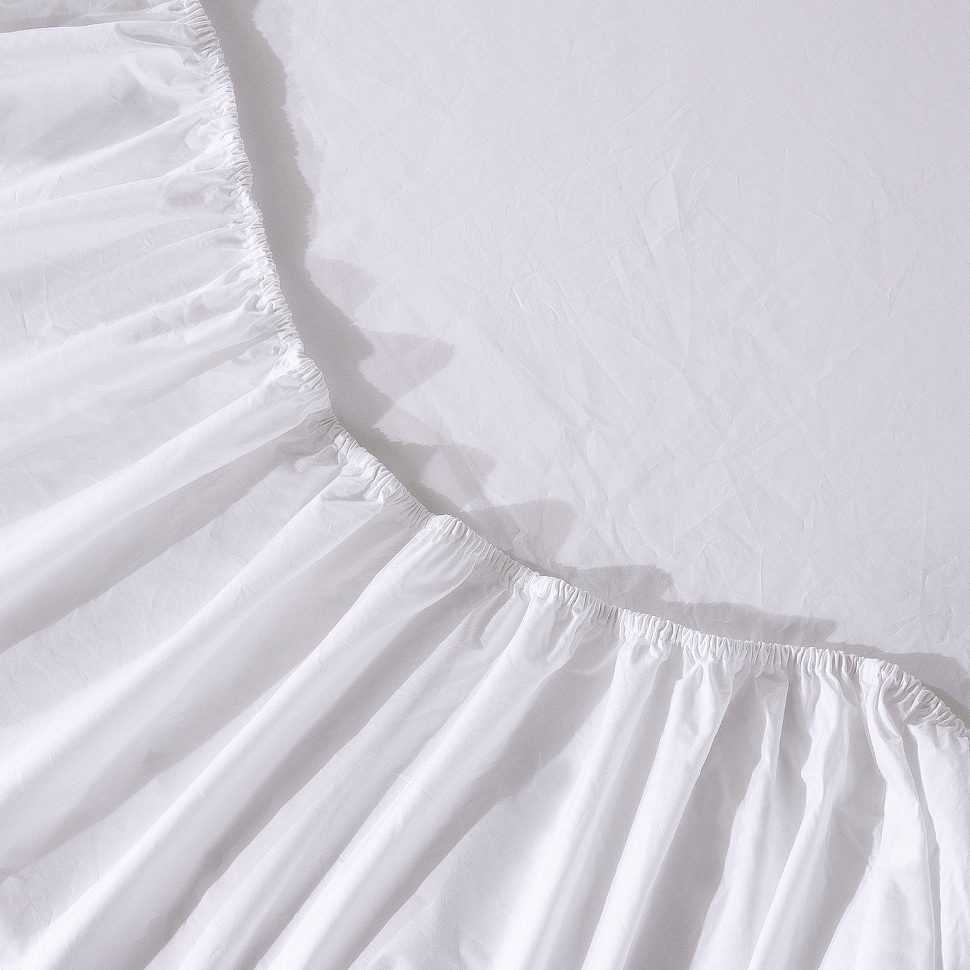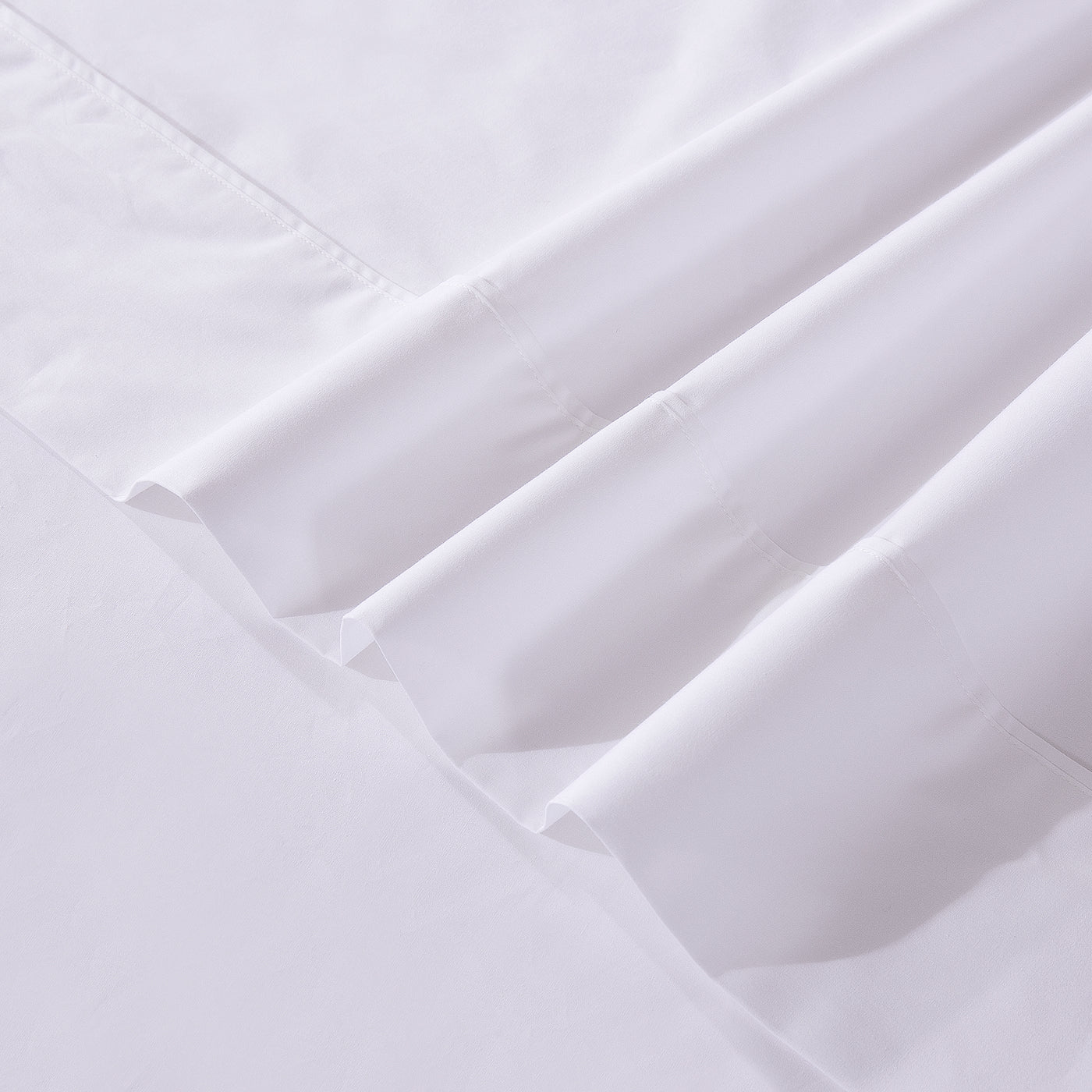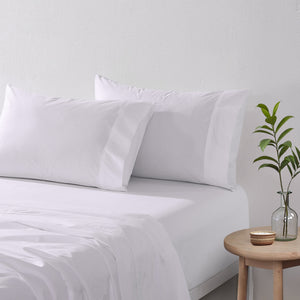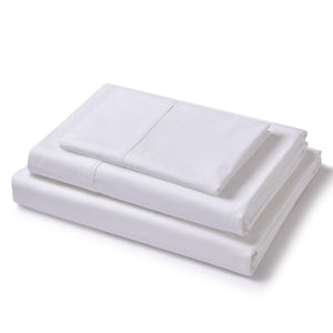 Enjoy crisp, breathable comfort every night with our 300TC cotton percale sheet set. Designed for a cool, smooth sleep experience, this lightweight weave gets softer with every wash.Features• 100% cotton percale in a crisp matte finish• 300 thread count - soft yet structured• Naturally cool and breathable• Machine-washable and easy-care finish• OEKO-TEX® certified - no harmful substances• Includes fitted sheet, flat sheet, and pillowcase(s)SizeSingle - Fitted Sheet 91 x 193 x 40cm | Flat Sheet 180 x 254cm | 1 Pillowcase 48 x 73cmKing Single - Fitted Sheet 107 x 203 x 40cm | Flat Sheet 200 x 274cm | 1 Pillowcase 48 x 73cmDouble - Fitted Sheet 137 x 193 x 40cm | Flat Sheet 228 x 254cm | 2 Pillowcases 48 x 73cmQueen - Fitted Sheet 152 x 203 x 50cm | Flat Sheet 245 x 274cm | 2 Pillowcases 48 x 73cmKing - Fitted Sheet 183 x 203 x 50cm | Flat Sheet 260 x 274cm | 2 Pillowcases 48 x 73cmSuper King - Fitted Sheet 203 x 203 x 50cm | Flat Sheet 280 x 274cm | 2 Pillowcases 48 x 73cmMaterials300 thread count cotton percaleCare InstructionsCold machine wash separately before use. Do not bleach or soak. Line dry or tumble dry low. Warm iron if needed. Do not dry clean.Made in China.