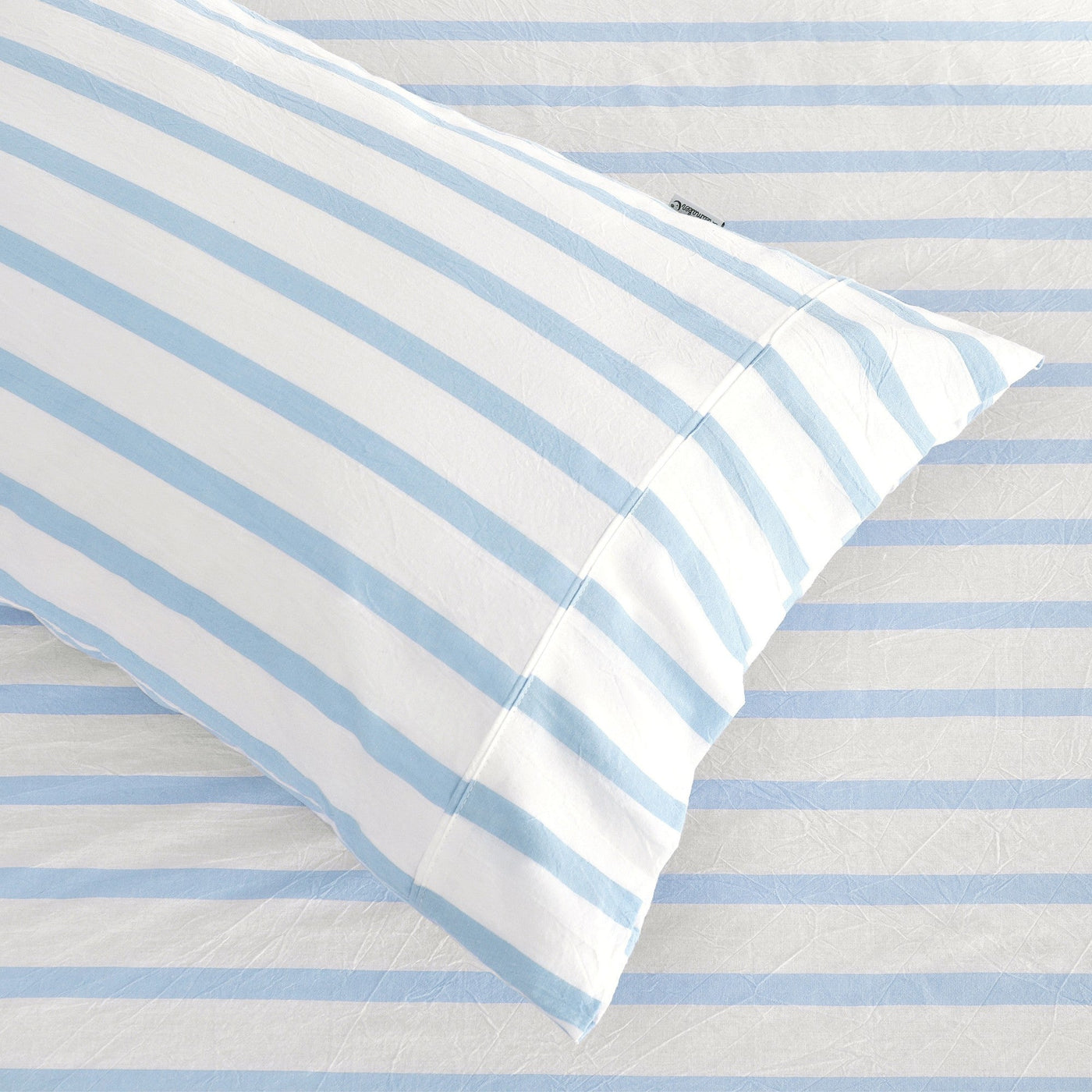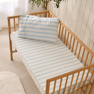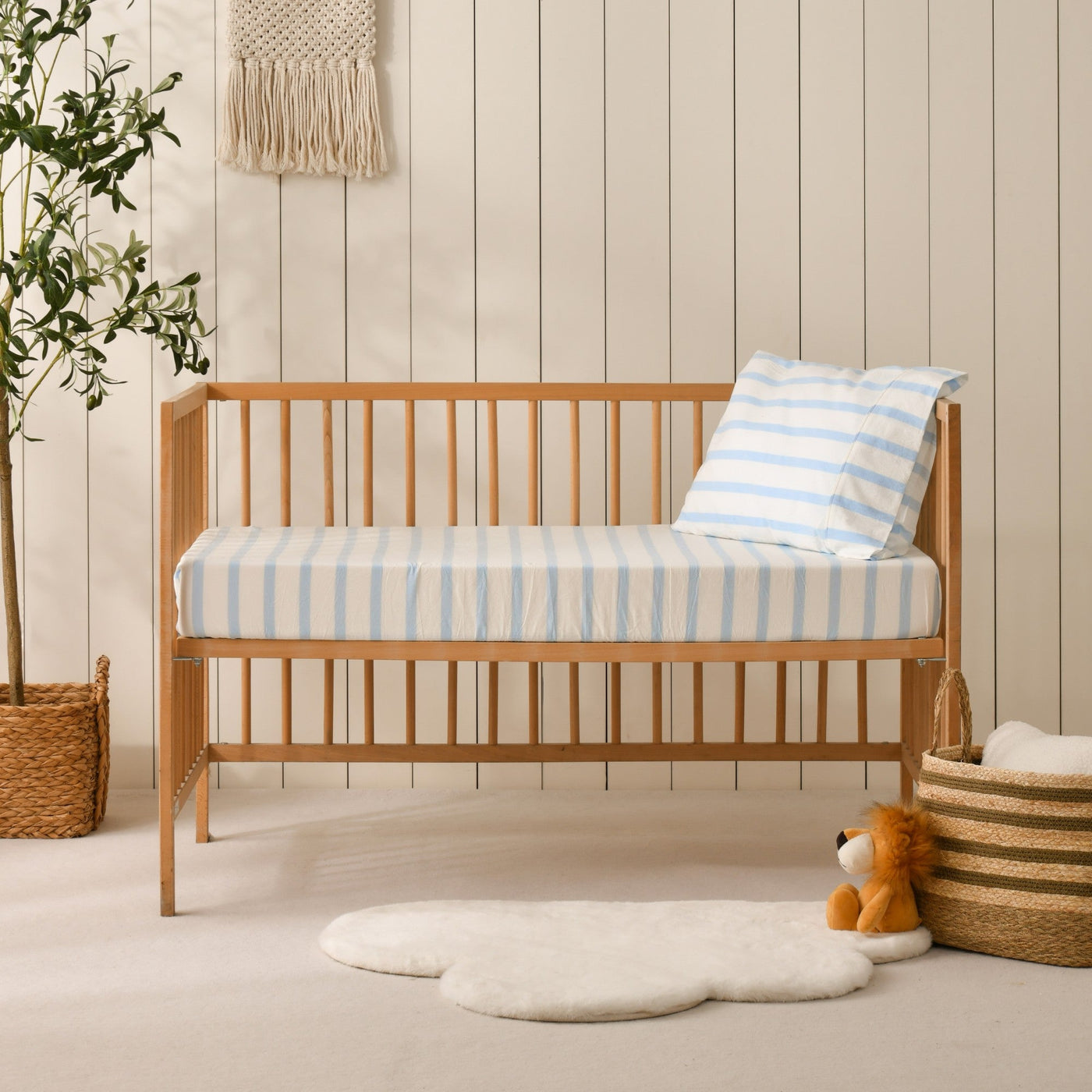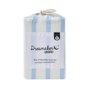 Baby Bask Washed Cotton Yarn Dyed Stripe Fitted Sheet Set Sky Large Cot
