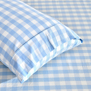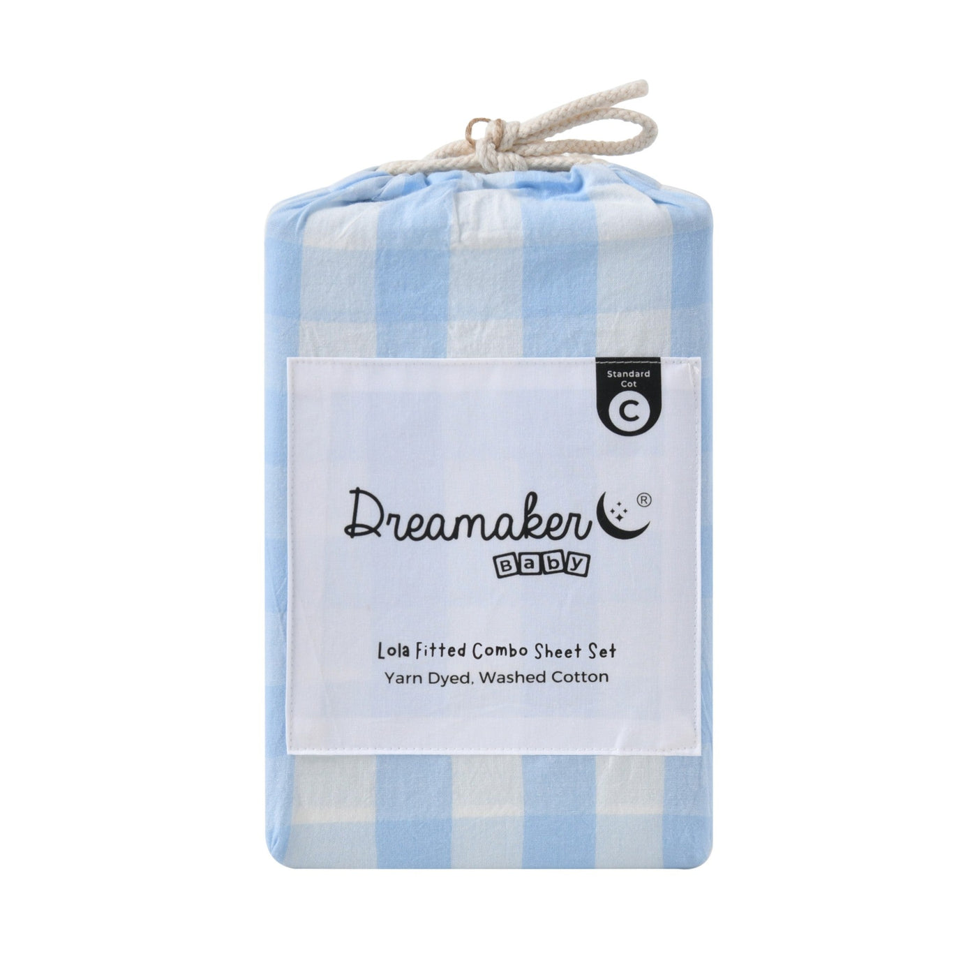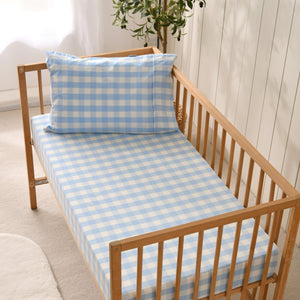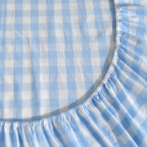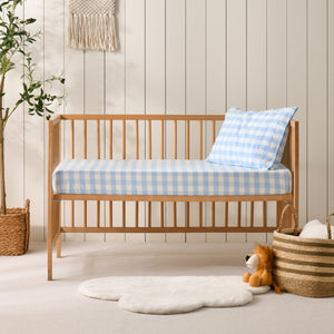 Baby Lola Washed Cotton Yarn Dyed Gingham Fitted Sheet Set Sky Large Cot