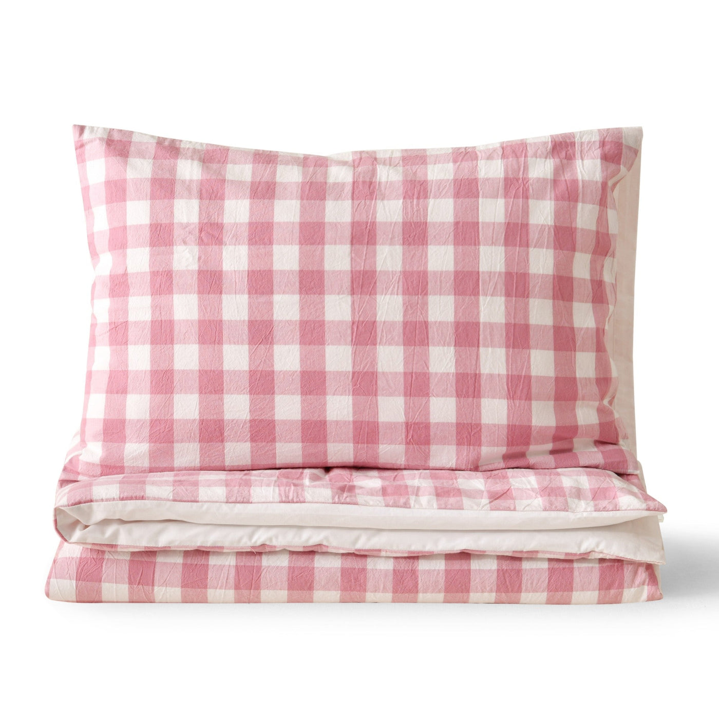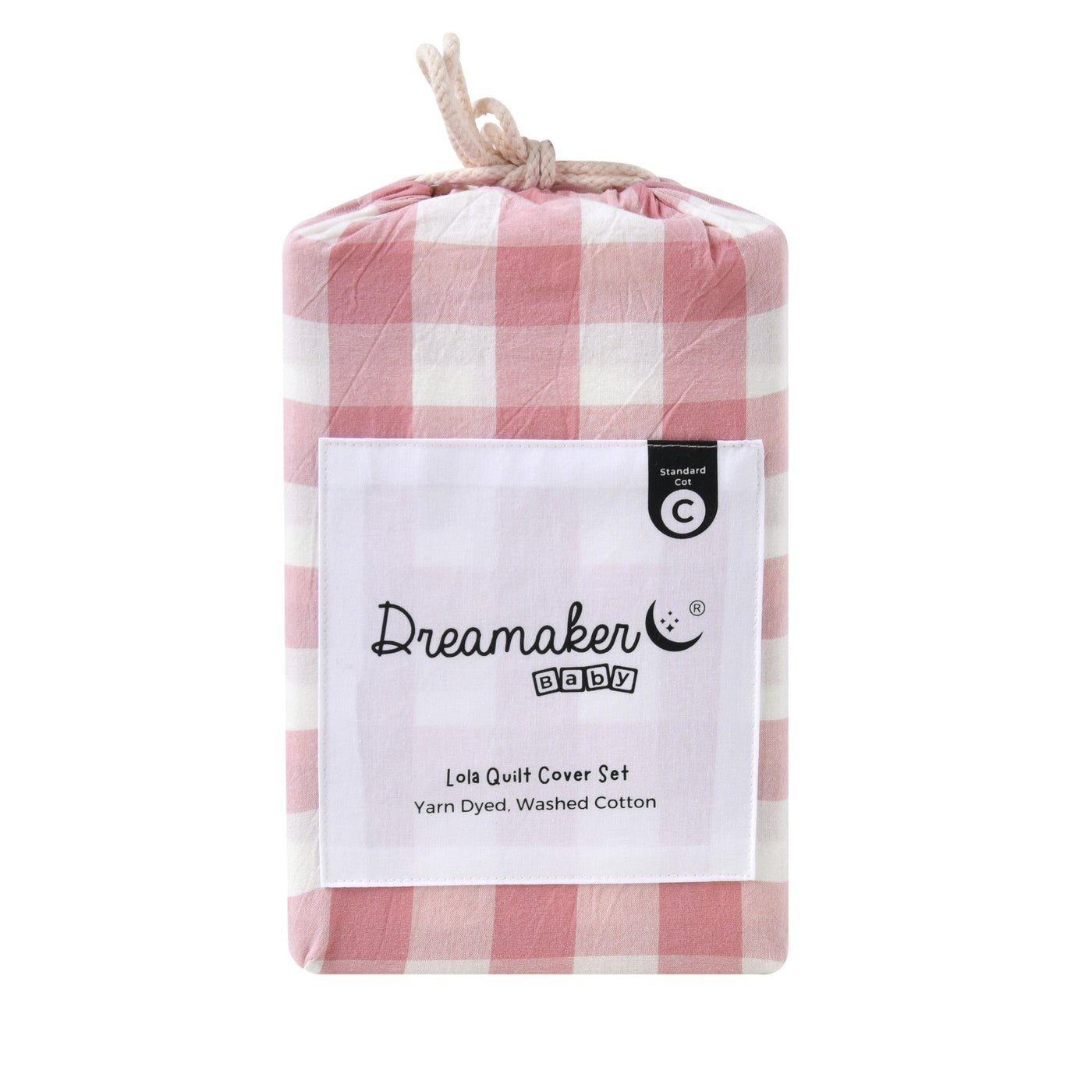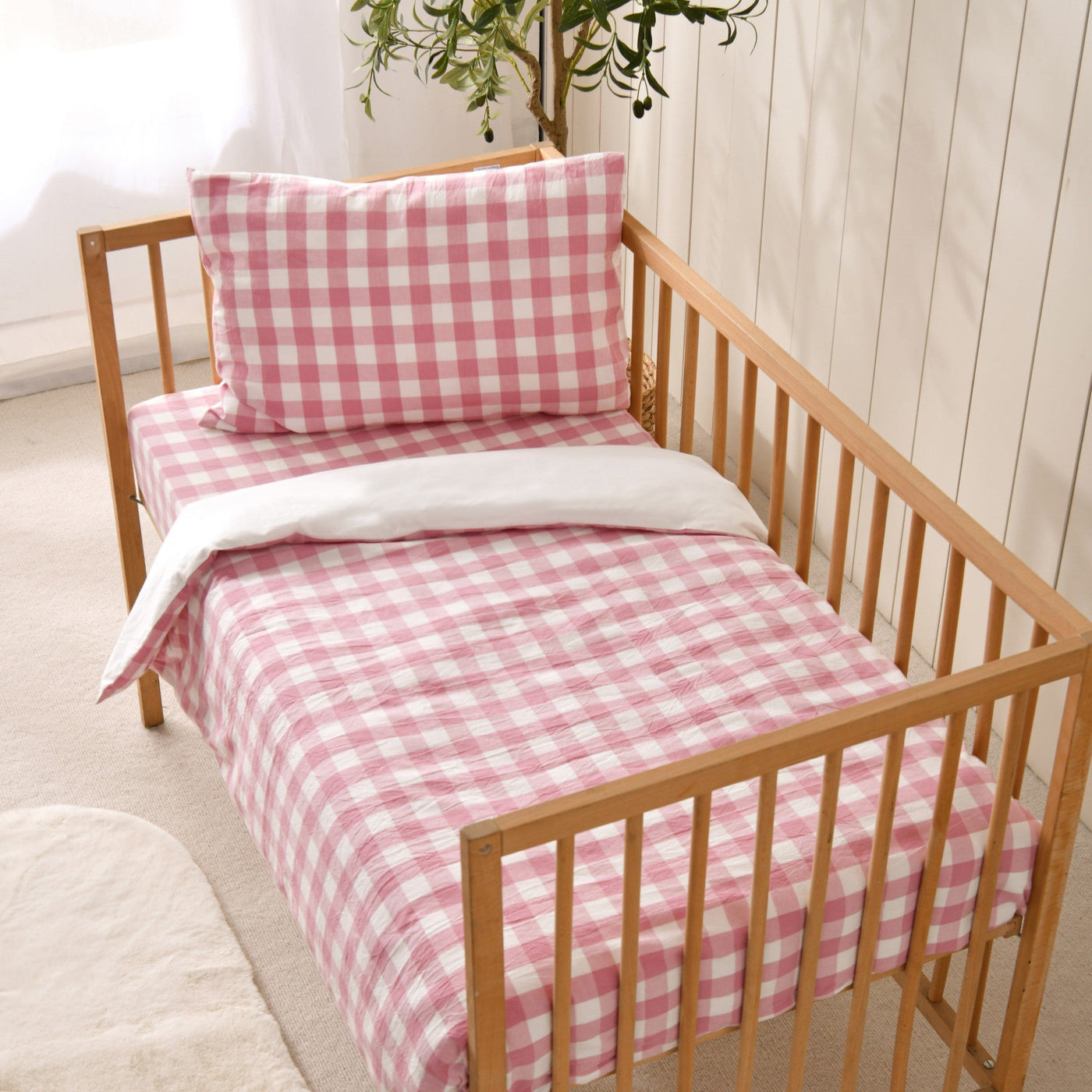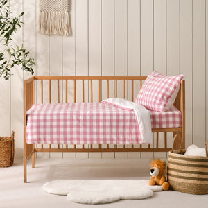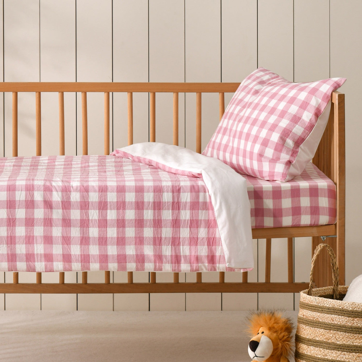 Baby Lola Washed Cotton Yarn Dyed Gingham Quilt Cover Set Pink Pearl Cot