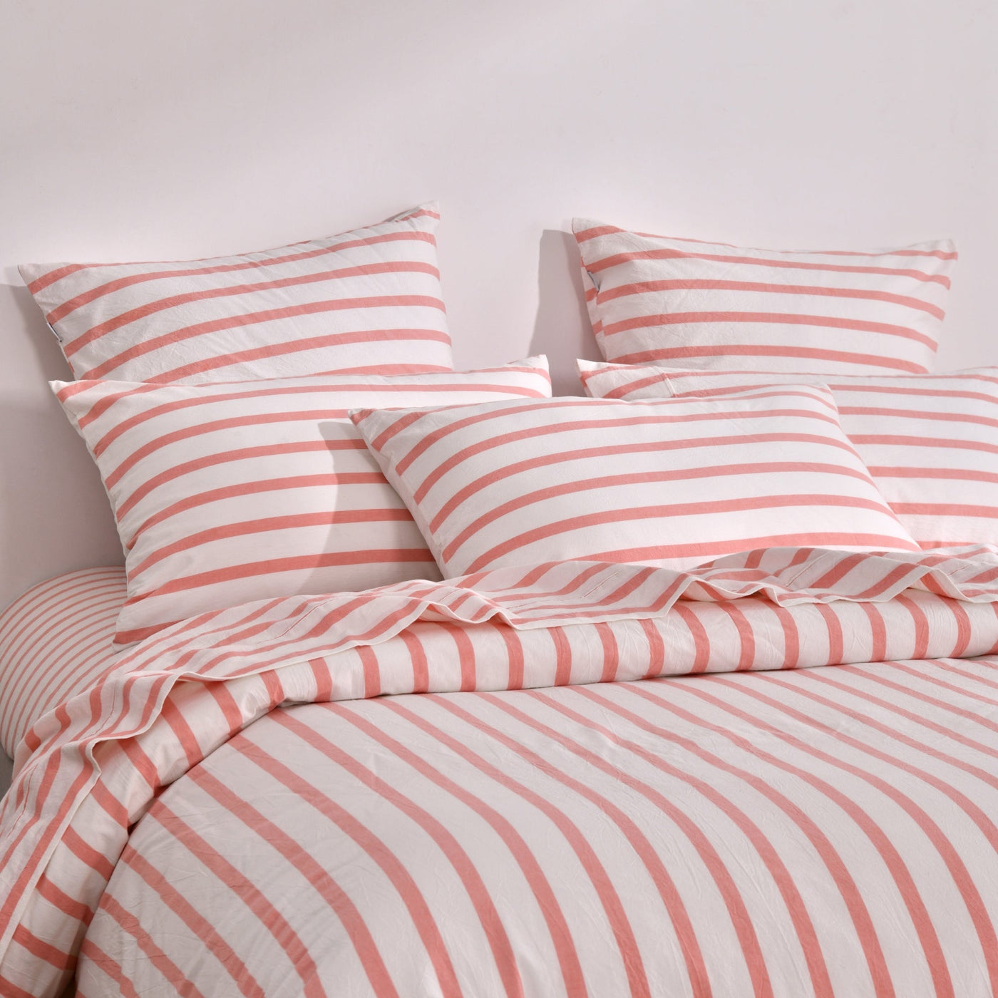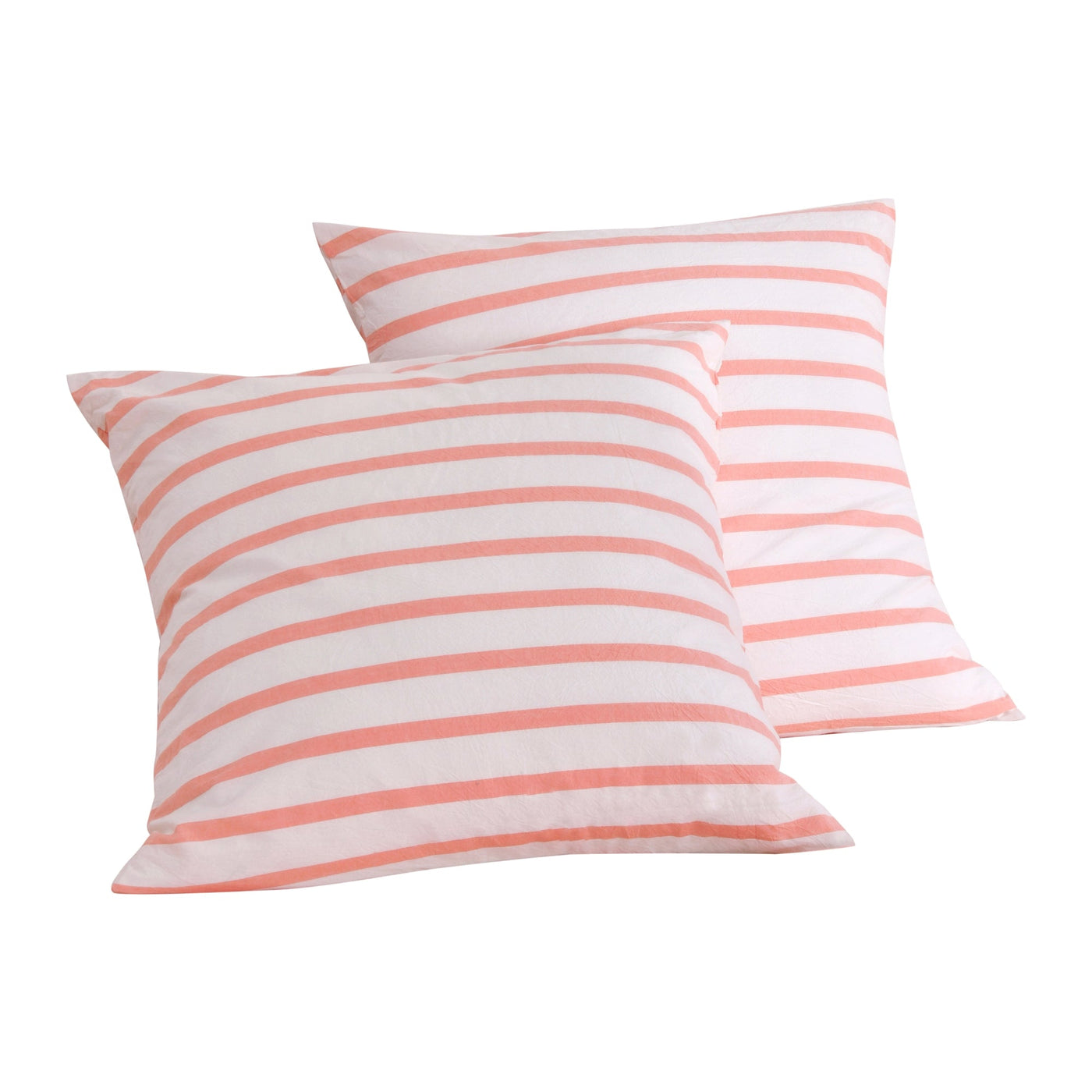 Bask Washed Cotton Yarn Dyed Stripe Euro Pillowcase Coral Twin Pack