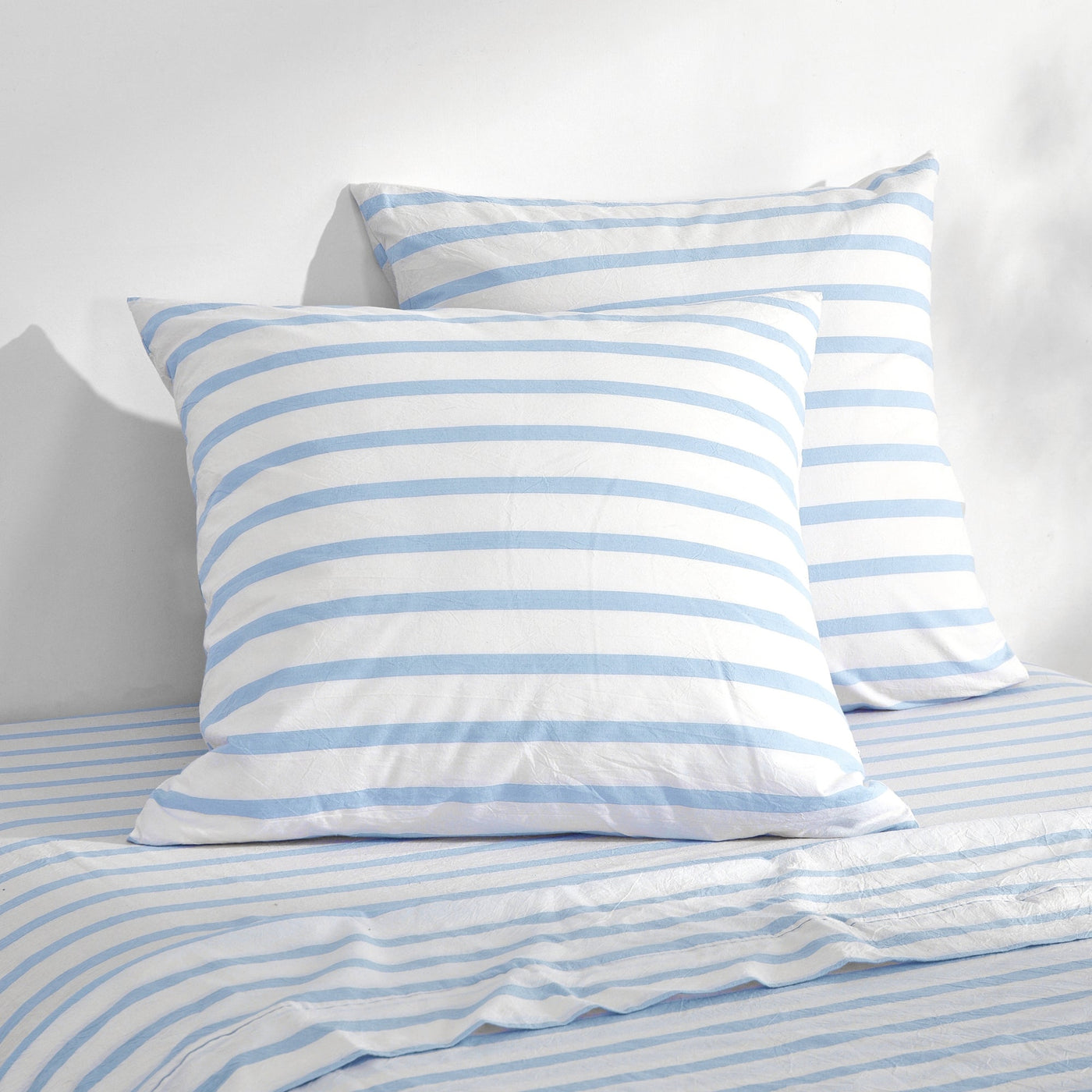 Bask Washed Cotton Yarn Dyed Stripe Euro Pillowcase Sky Twin Pack