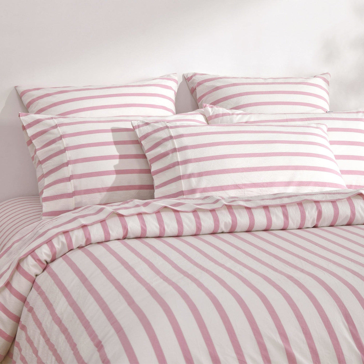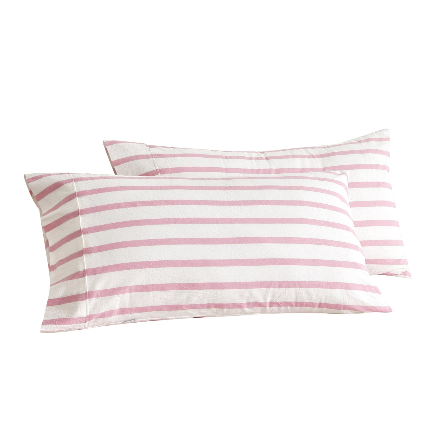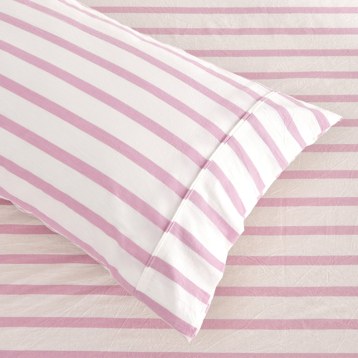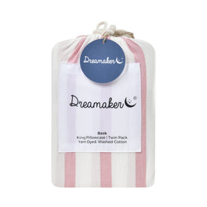 Bask Washed Cotton Yarn Dyed Stripe King Pillowcase Pink Pearl Twin Pack