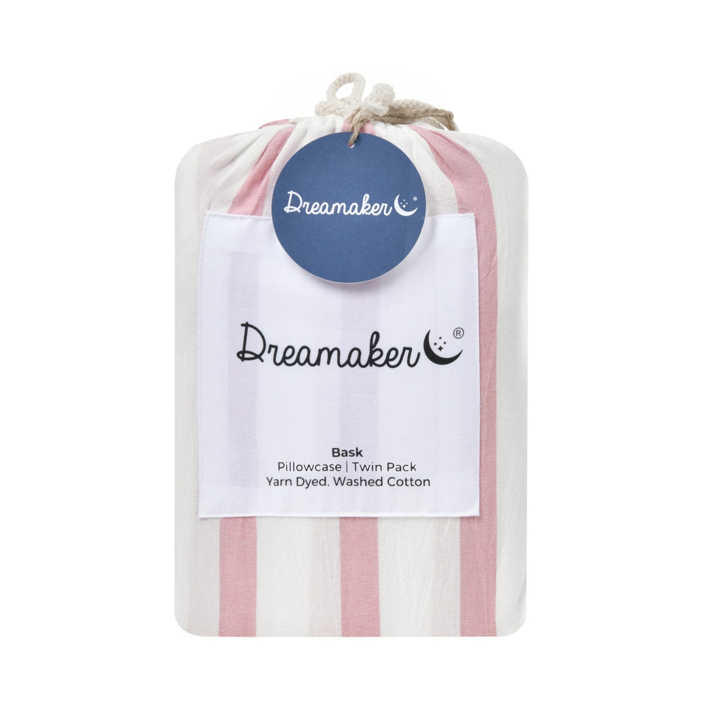 Relax in the sunny softness of the Dreamaker Bask Striped Washed Cotton Standard Pillowcases in a twin pack. Made from pre-washed yarn-dyed cotton, our striped pattern is woven to lock in rich colour and detail, while the washed finish creates a lived-in, relaxed feel with a soft matte texture that only gets better with time.Features• Yarn-dyed cotton for long lasting colour• Woven striped pattern• Ultra-soft, breathable washed cotton• Machine washable• Includes cloth bag for easy storage• OEKO-TEX certified - free from harmful substances• Mix and match our Washed Cotton bedding setsSizeStandard Pillowcase - Twin Pack - 48 x 73cmMaterials100% washed cotton, yarn dyed.Care InstructionsCold gentle machine wash separately before use. Wash with similar colours. Do not bleach or soak. Line dry in shade. Warm iron on reverse if required. Do not dry clean.Designed in Australia.Made in China.