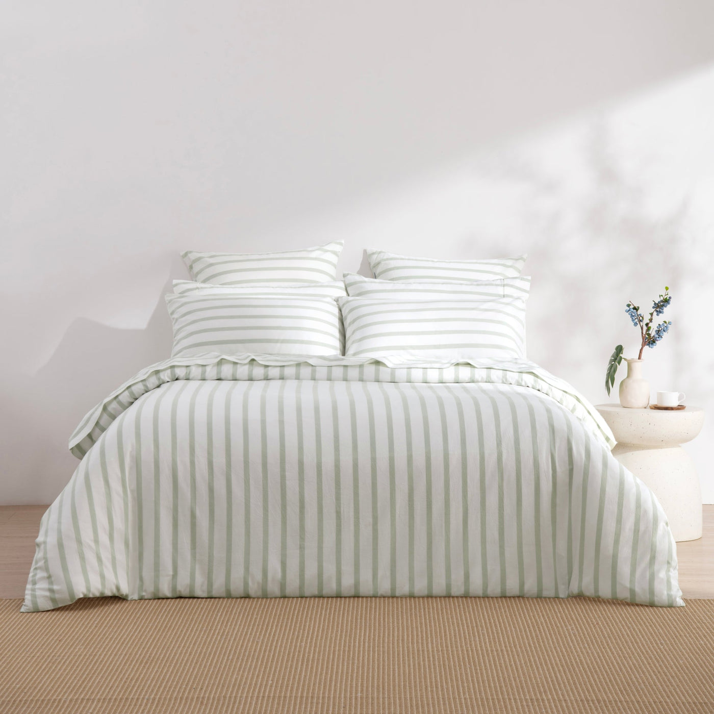 Bask Washed Cotton Yarn Dyed Stripe Quilt Cover Set Sage