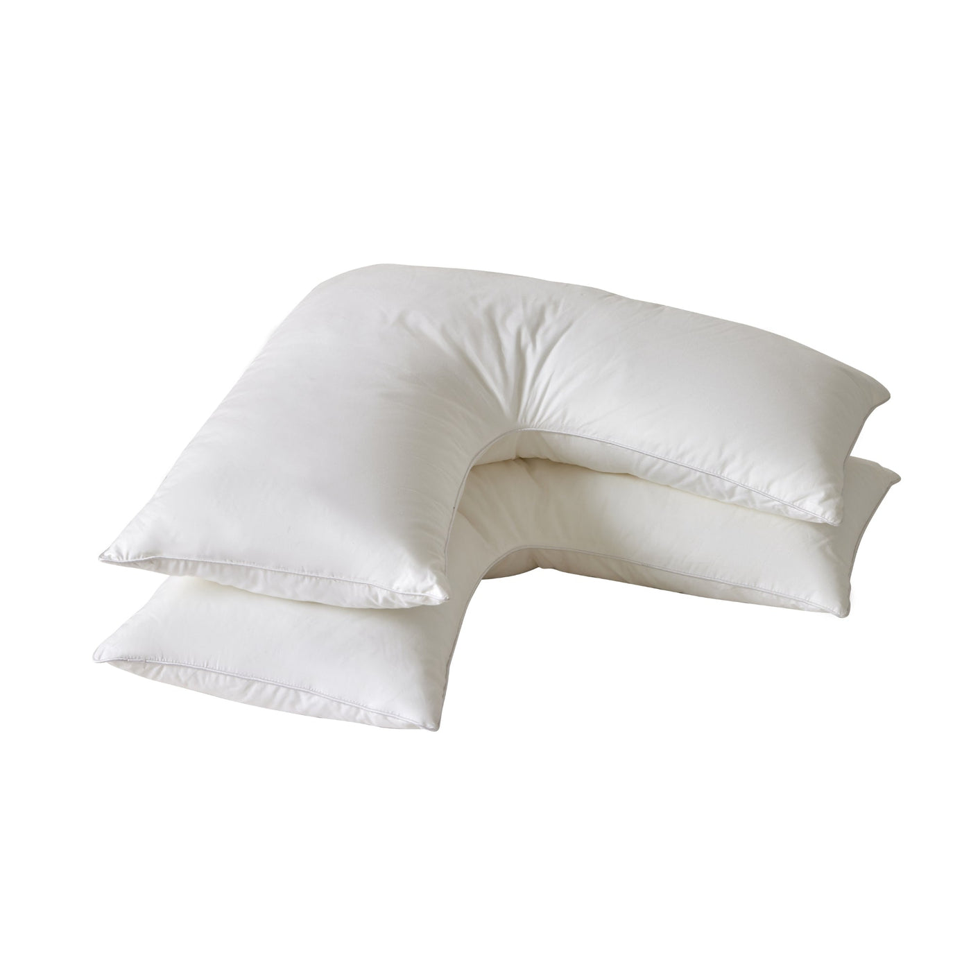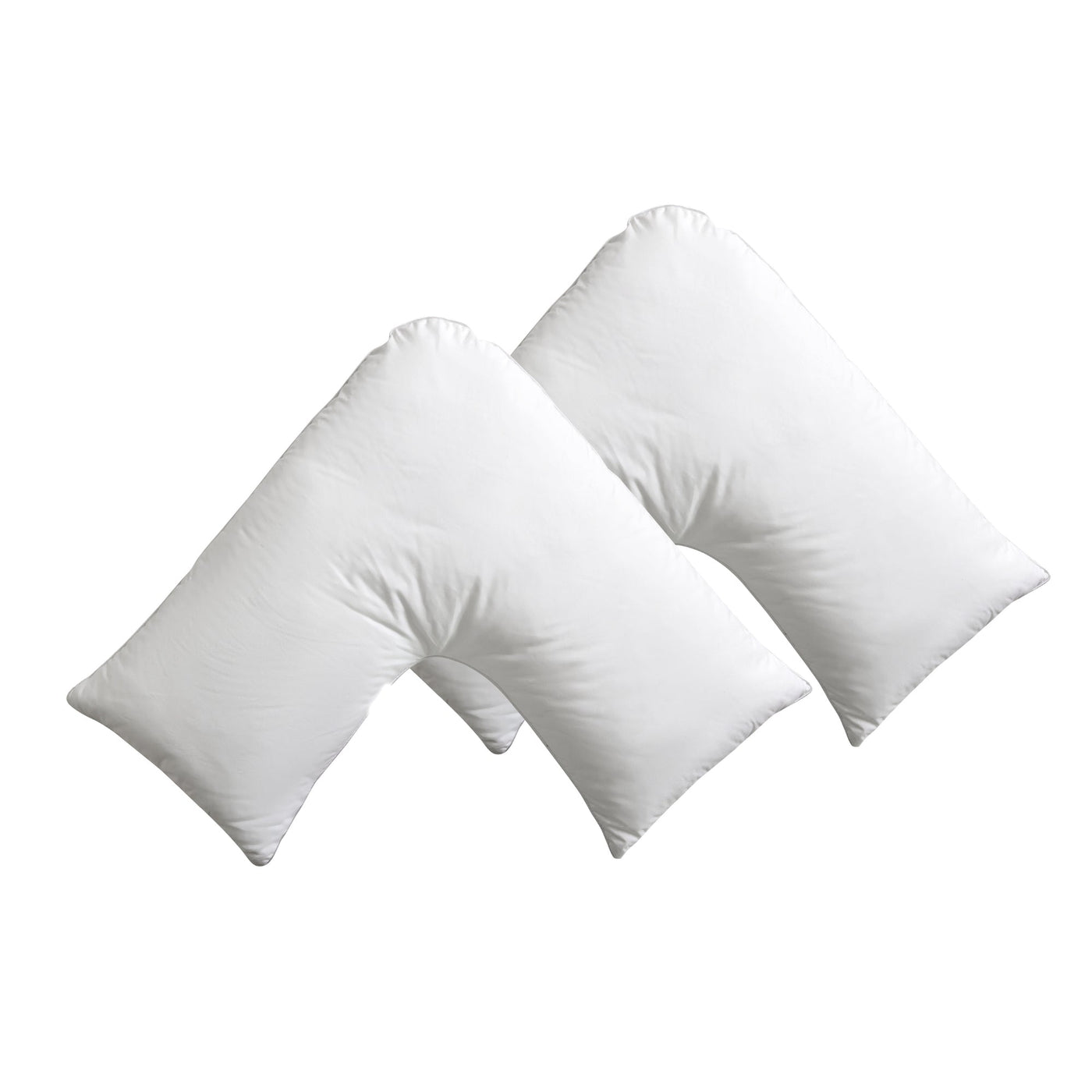 Experience versatile, full-body comfort with the Dreamaker Down Alternative V-Shape Pillow Twin Pack. Designed to naturally contour to the body, each V-shaped pillow offers targeted support to the neck, head, and joints - perfect for sleeping, reading, travelling, nursing, or lounging. The breathable 100% cotton Japara cover adds durability and softness, while the down alternative microfibre fill draws away moisture to help regulate body temperature year-round. Machine washable and easy to care for, this twin pack is ideal for allergy-conscious users seeking everyday comfort without compromise.Whether you're sitting upright or lying down, the unique V-shape keeps your spine aligned and reduces pressure on your shoulders and back. The lightweight fill offers plush support without flattening over time. A must-have addition to any bedroom or lounge space, these pillows are suitable for all ages and sleep styles.Features• Ergonomically shaped for full-body support that relieves pressure on the neck, shoulders and joints• Versatile design ideal for sleeping, reading, nursing, lounging or travel• Breathable japara cotton cover offers a soft feel and moisture control for all-night comfort• Down alternative microfibre fill keeps you warm in winter and cool in summer• Easy to care for and machine washable for everyday convenience• OEKO-TEX® certified fabric is free from harmful substances and safe for sensitive skinSize2 x V Shape Pillows - 36 x 78cmMaterialCover: 100% Cotton JaparaFill: 100% Polyester MicrofibreCare InstructionsAir well before use. Gentle machine wash in warm or cold water with detergent only. Large commercial or industrial appliance highly recommended. Tumble dry on low heat, frequent turning. Do not dry clean. Regular outdoor airing is ideal for best results.Made in China