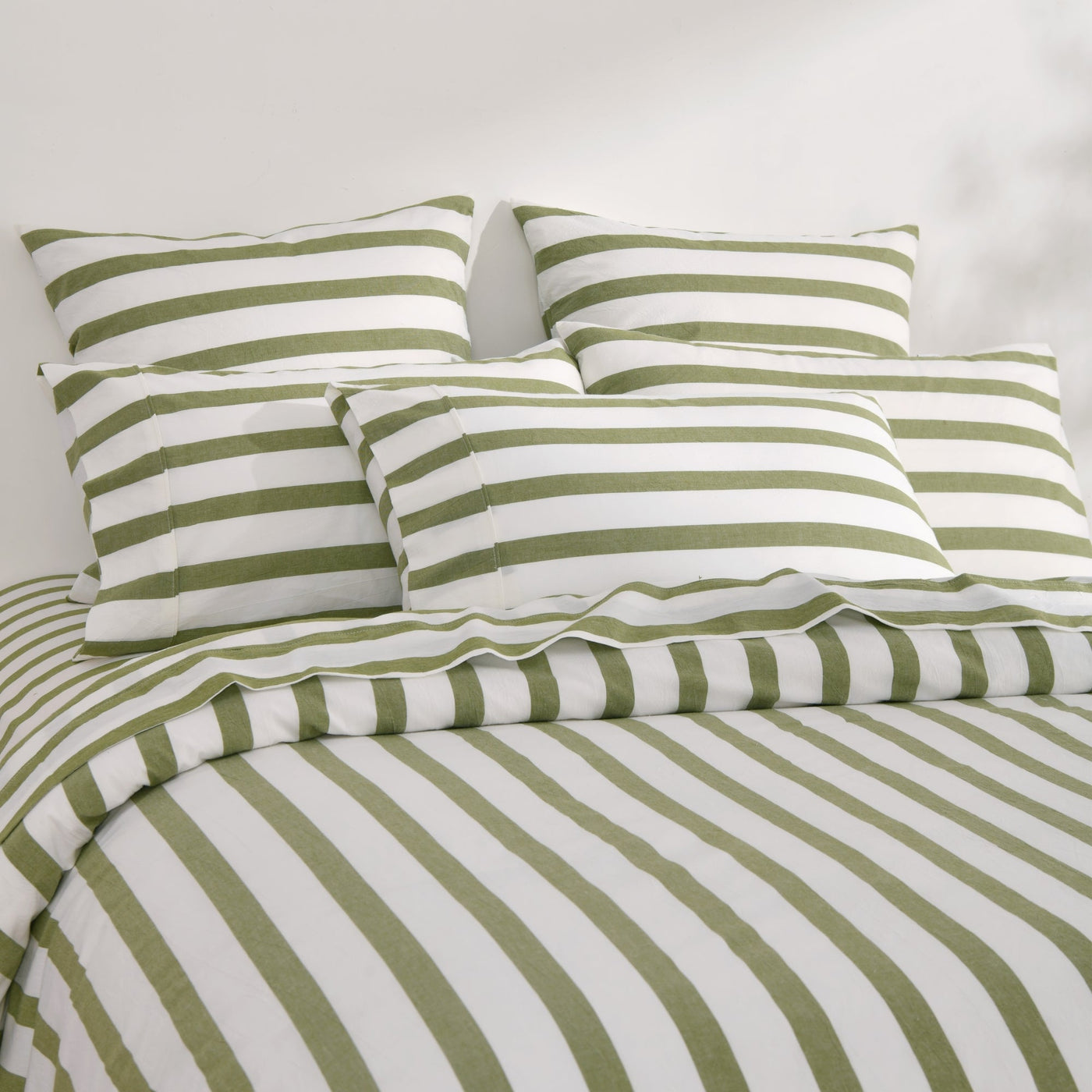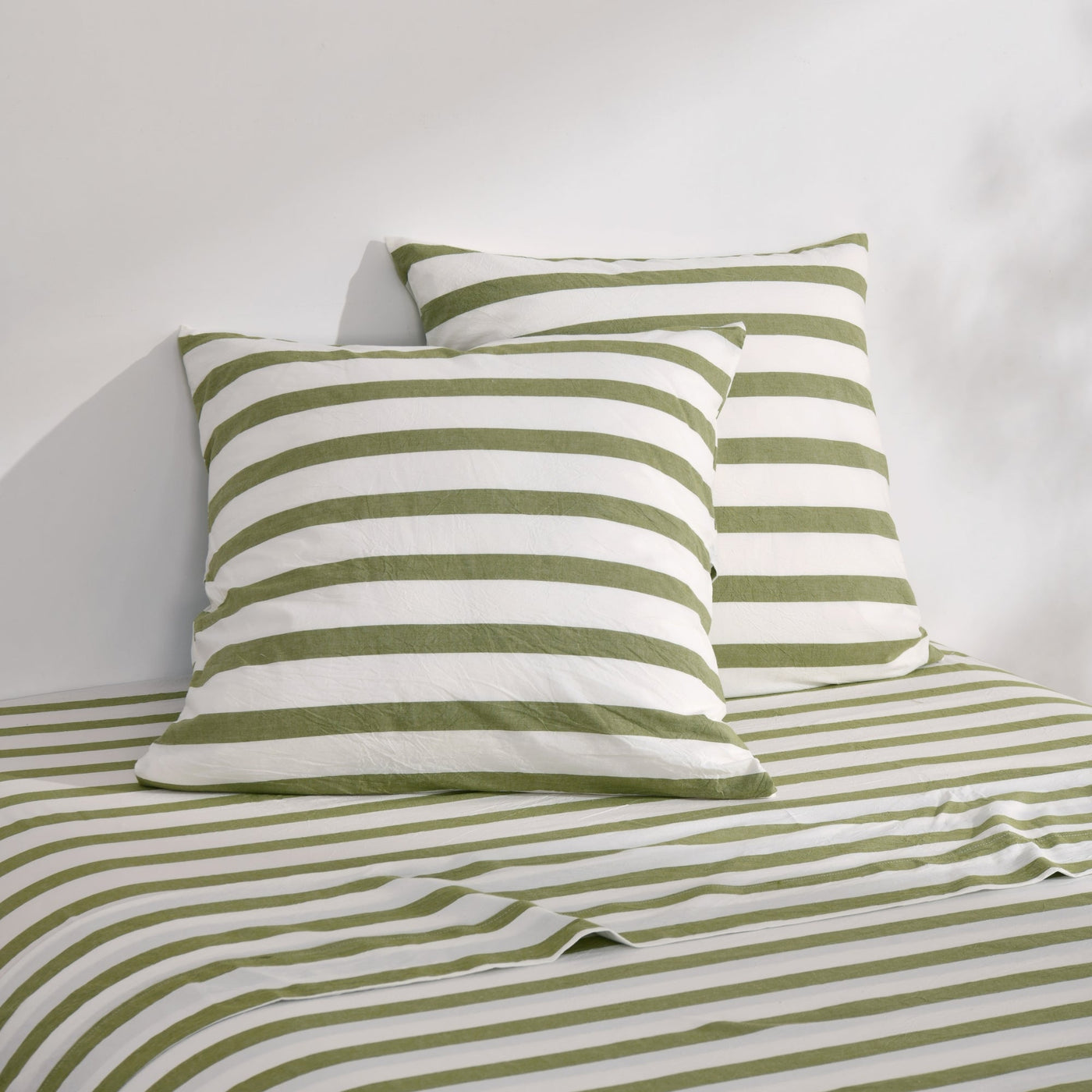 Cove Washed Cotton Yarn Dyed Wide Stripe Euro Pillowcase Olive Twin Pack