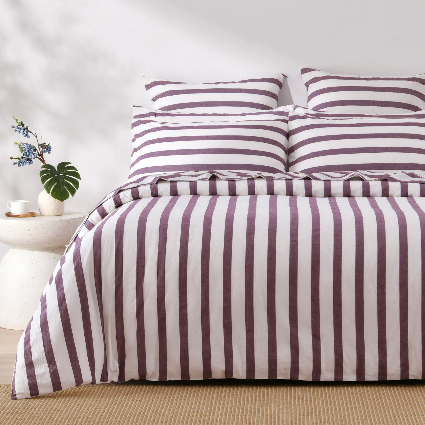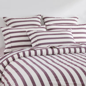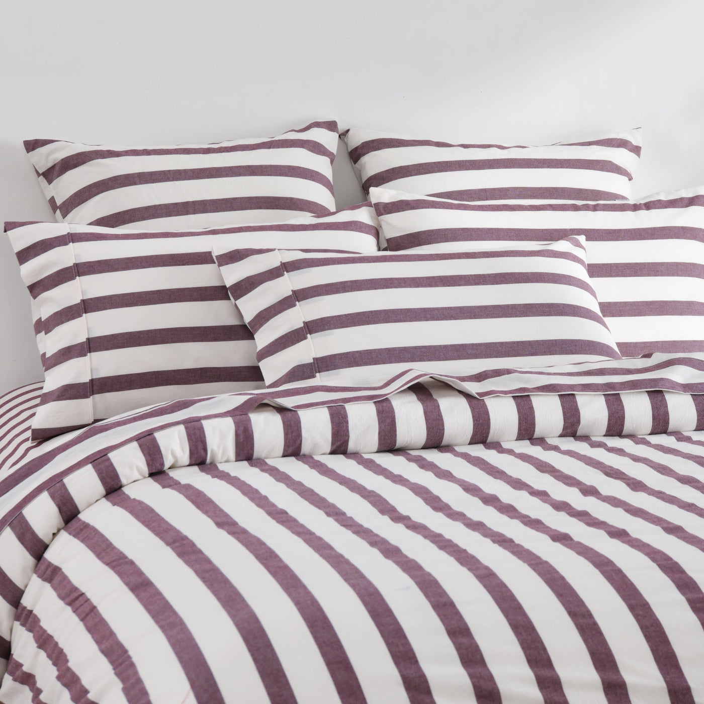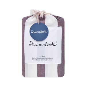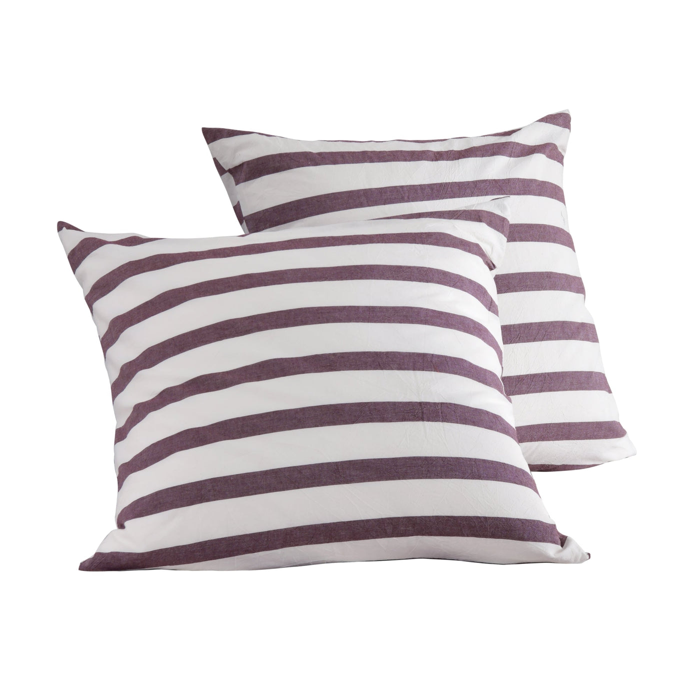 Cove Washed Cotton Yarn Dyed Wide Stripe Euro Pillowcase Plum Twin Pack