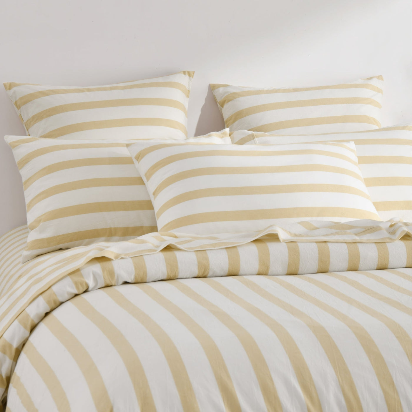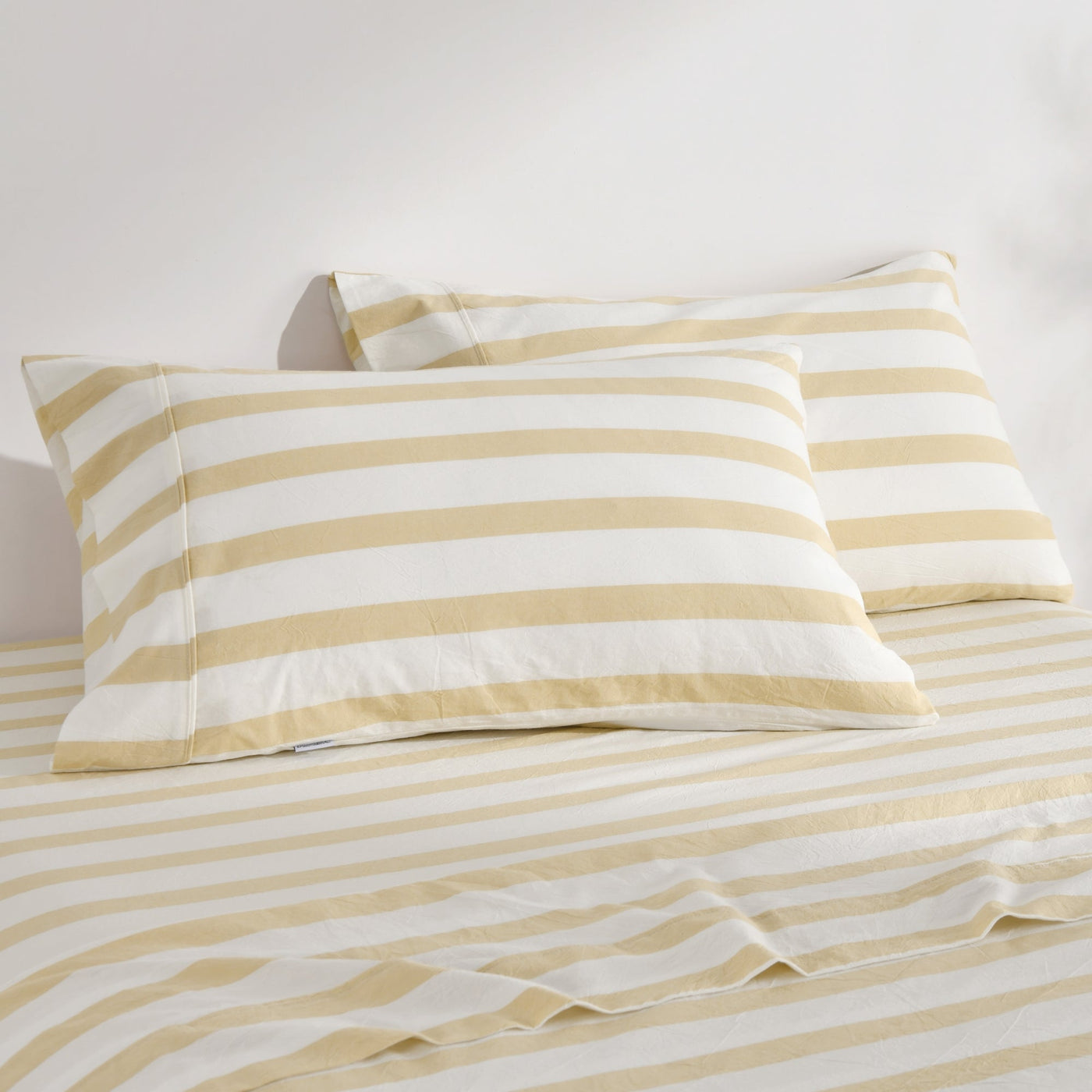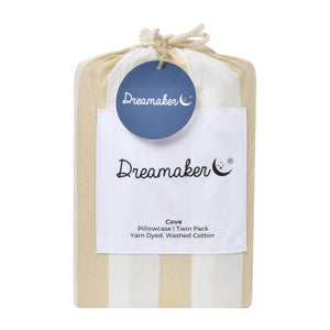 Bask in the subtle softness of the Dreamaker Cove Wide Striped Washed Cotton Standard Pillowcases in a twin pack. Made from pre-washed yarn-dyed cotton, our striped pattern is woven to lock in rich colour and detail, while the washed finish creates a lived-in, relaxed feel with a soft matte texture that only gets better with time.Features• Yarn-dyed cotton for long lasting colour• Woven in a wide striped pattern• Ultra-soft, breathable washed cotton• Machine washable• Includes cloth bag for easy storage• OEKO-TEX certified - free from harmful substances• Mix and match our Washed Cotton bedding setsSizeStandard Pillowcase - Twin Pack - 48 x 73cmMaterials100% washed cotton, yarn dyed.Care InstructionsCold gentle machine wash separately before use. Wash with similar colours. Do not bleach or soak. Line dry in shade. Warm iron on reverse if required. Do not dry clean.Designed in Australia.Made in China.