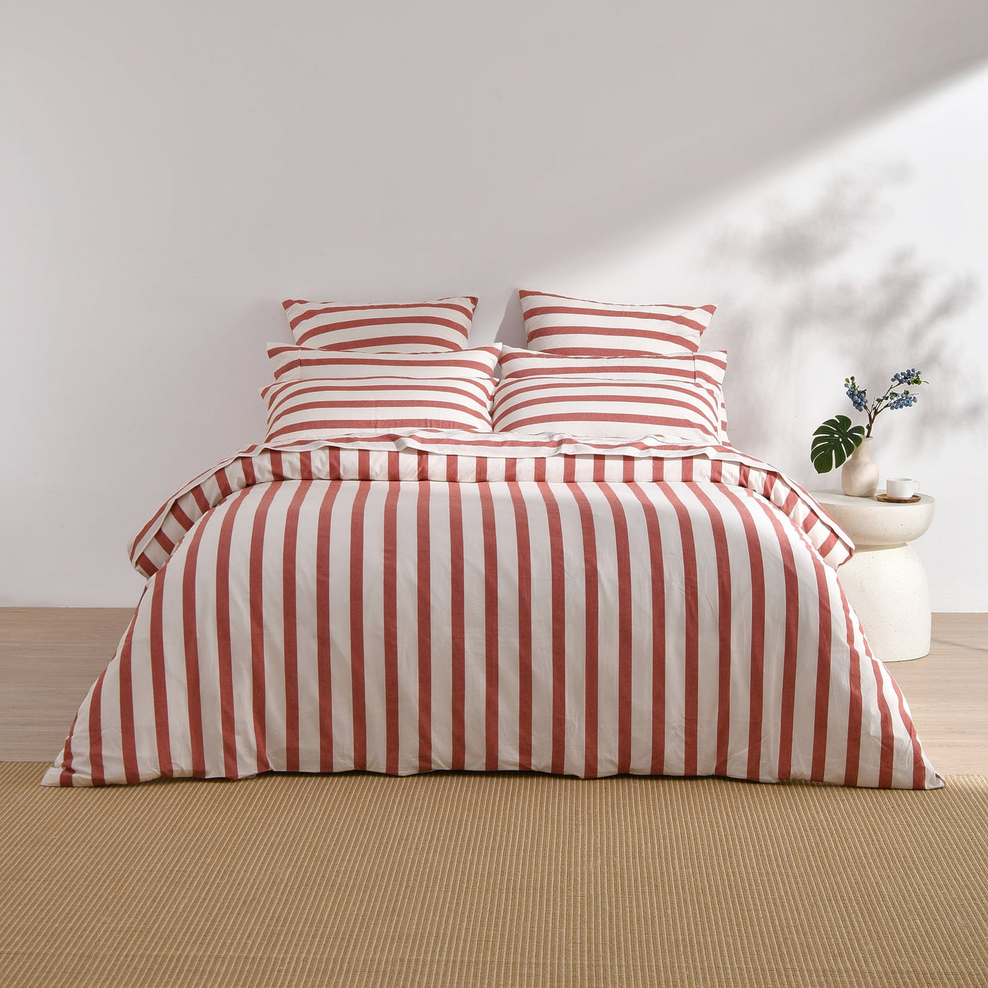 Cove Washed Cotton Yarn Dyed Wide Stripe Quilt Cover Set Rust