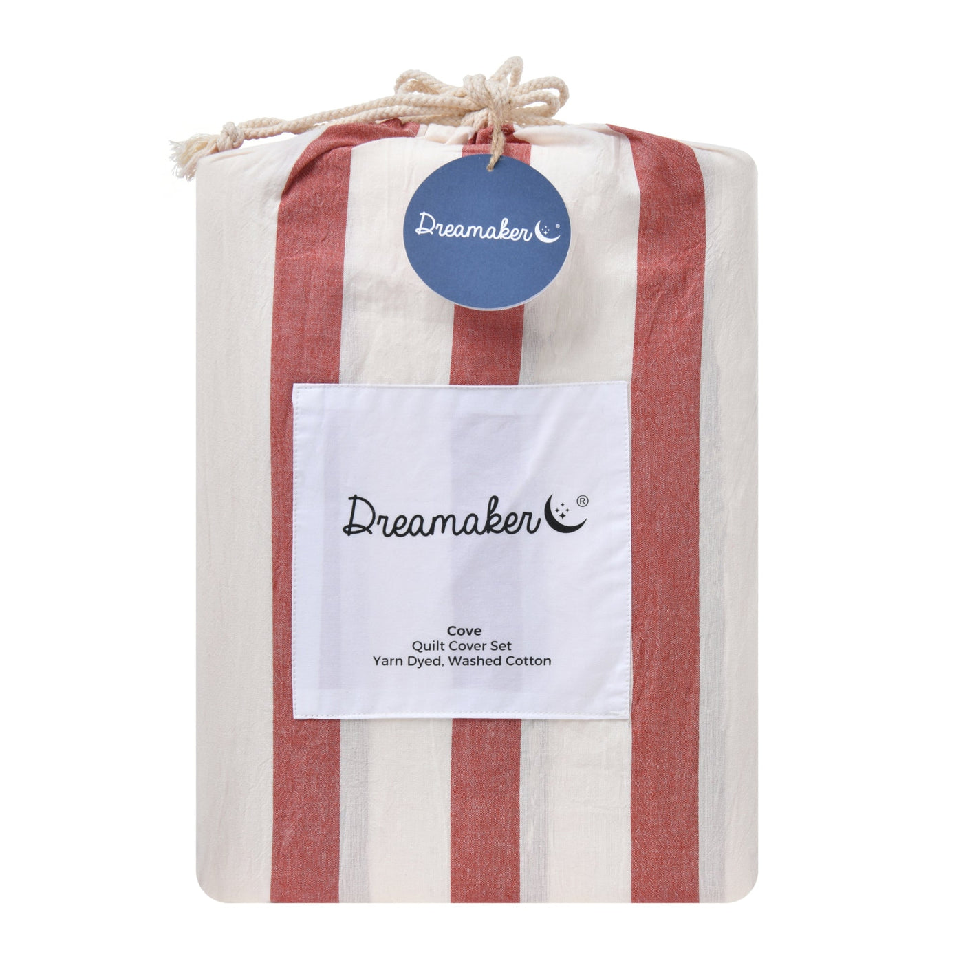 Bask in the subtle softness of the Dreamaker Cove Wide Striped Washed Cotton Quilt Cover Set. Made from pre-washed yarn-dyed cotton, our striped pattern is woven to lock in rich colour and detail, while the washed finish creates a lived-in, relaxed feel with a soft matte texture that only gets better with time.
