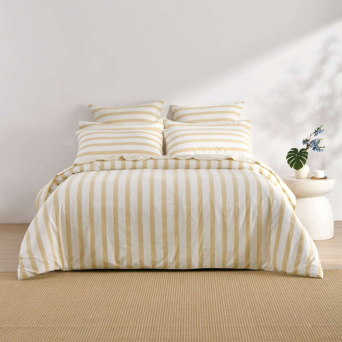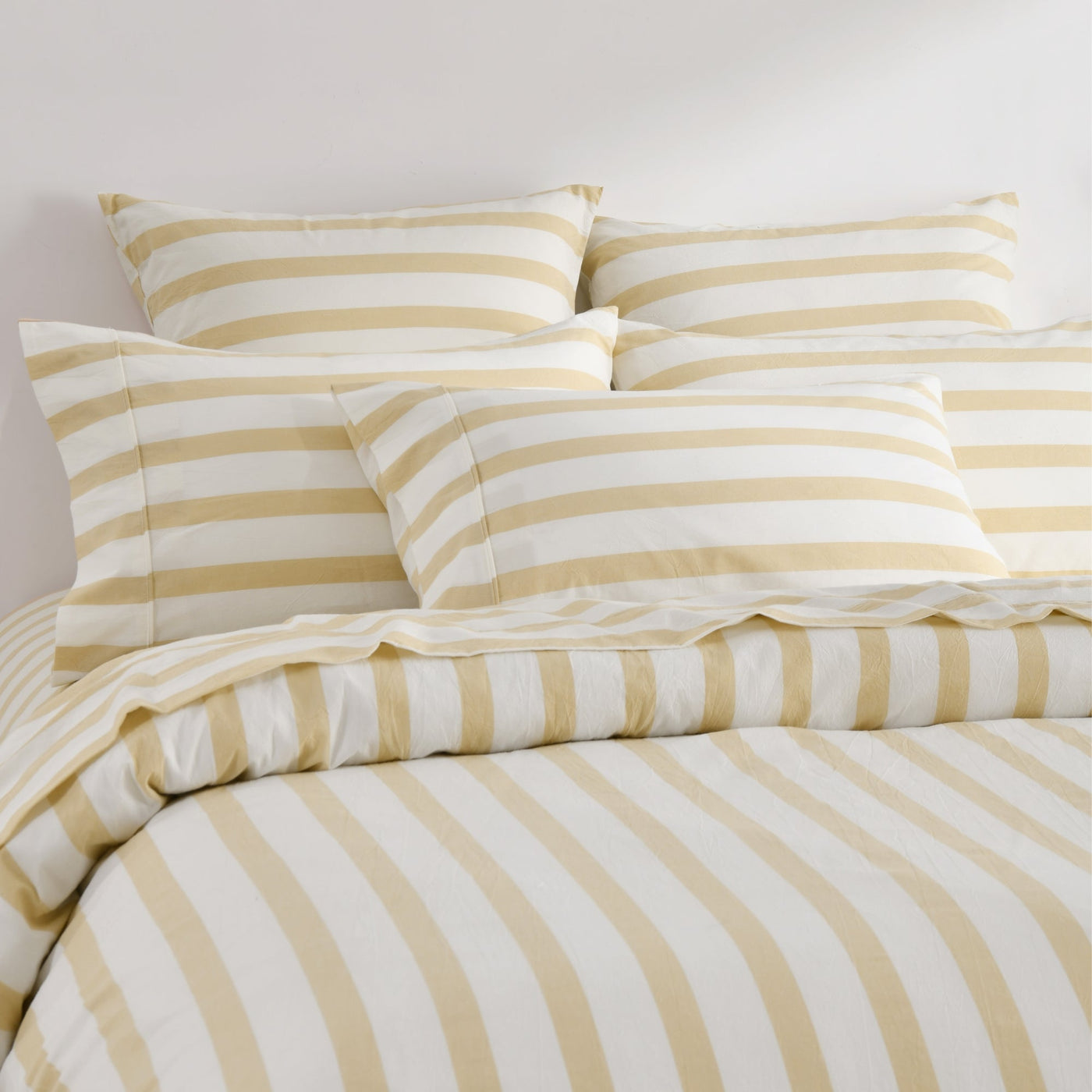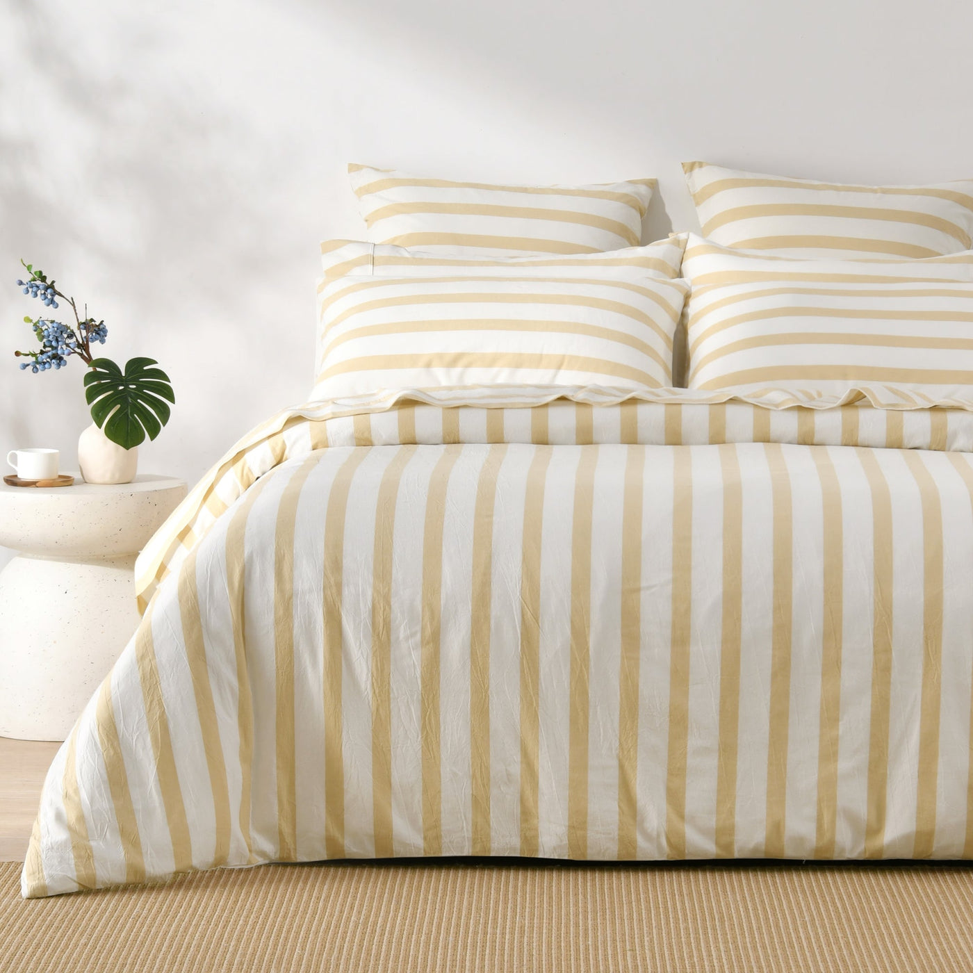 Cove Washed Cotton Yarn Dyed Wide Stripe Quilt Cover Set Sand