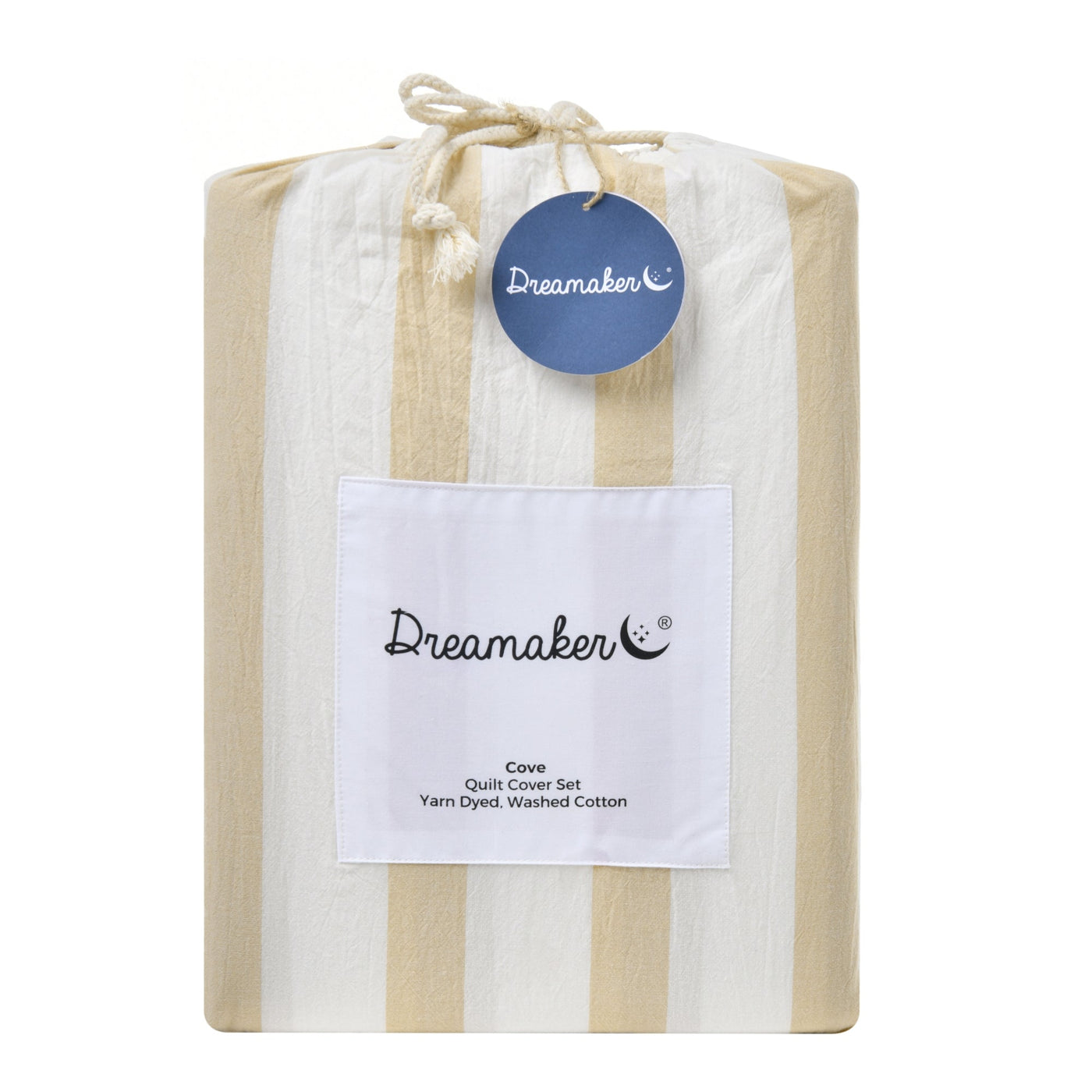 Bask in the subtle softness of the Dreamaker Cove Wide Striped Washed Cotton Quilt Cover Set. Made from pre-washed yarn-dyed cotton, our striped pattern is woven to lock in rich colour and detail, while the washed finish creates a lived-in, relaxed feel with a soft matte texture that only gets better with time.