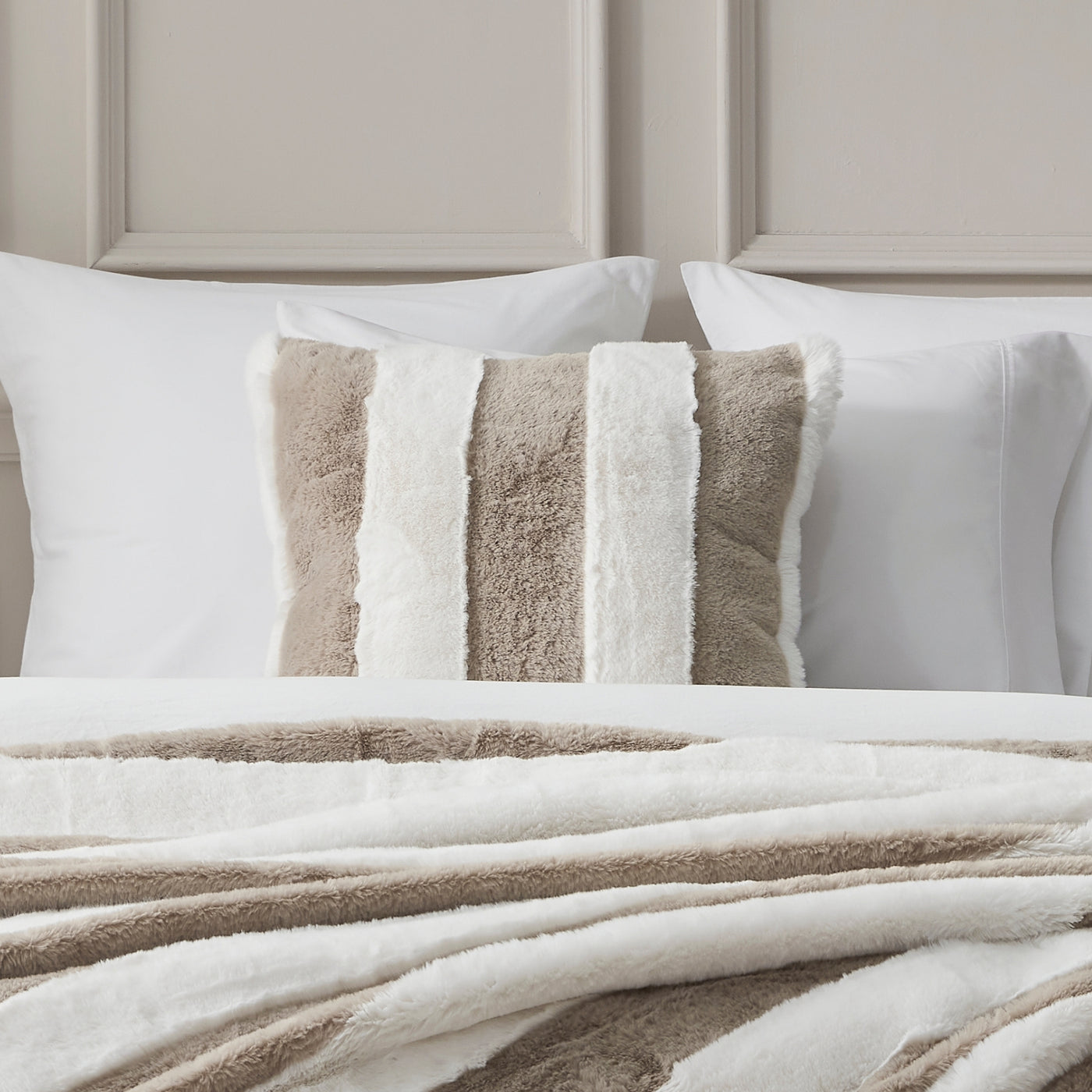 Indulge in the sumptuous softness of the Denver Carved Stripe Faux Fur Cushion. Featuring wide stripes carved into deep, sumptuous faux fur with a velvety, dense faux fur reverse for comfort and contrast. Create a layered look by styling with our throw blankets and extra cushions from Dreamaker's signature plush faux fur collection.Features• Designed in Australia• Carved stripe faux fur with a dense faux fur reverse• Generously sized and includes cushion insert• Removable cushion cover with hidden zip• Great as an accent or as a backdrop to prints• OEKO-TEX Standard 100 certifiedSizes50 x 50cmMaterialsFront: 470gsm polyester faux furReverse: 240gsm polyester faux furInsert: PolyfillCare InstructionsRemove inner before washing. Gentle machine wash only (30°C) with similar colours. Colour safe detergent recommended. Do not bleach. Tumble dry low. Do not iron. Do not dry clean.Designed in Australia.Made in China.