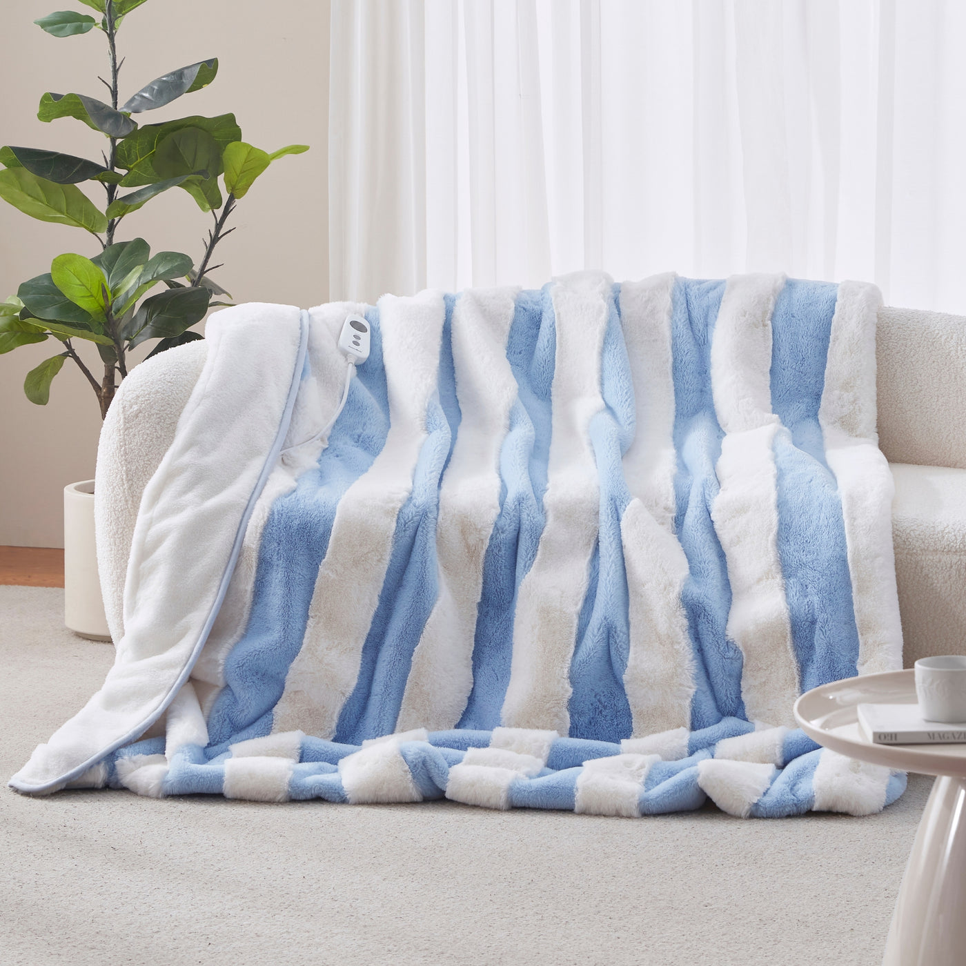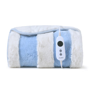 Denver Carved Stripe Faux Fur Heated Throw Sky
