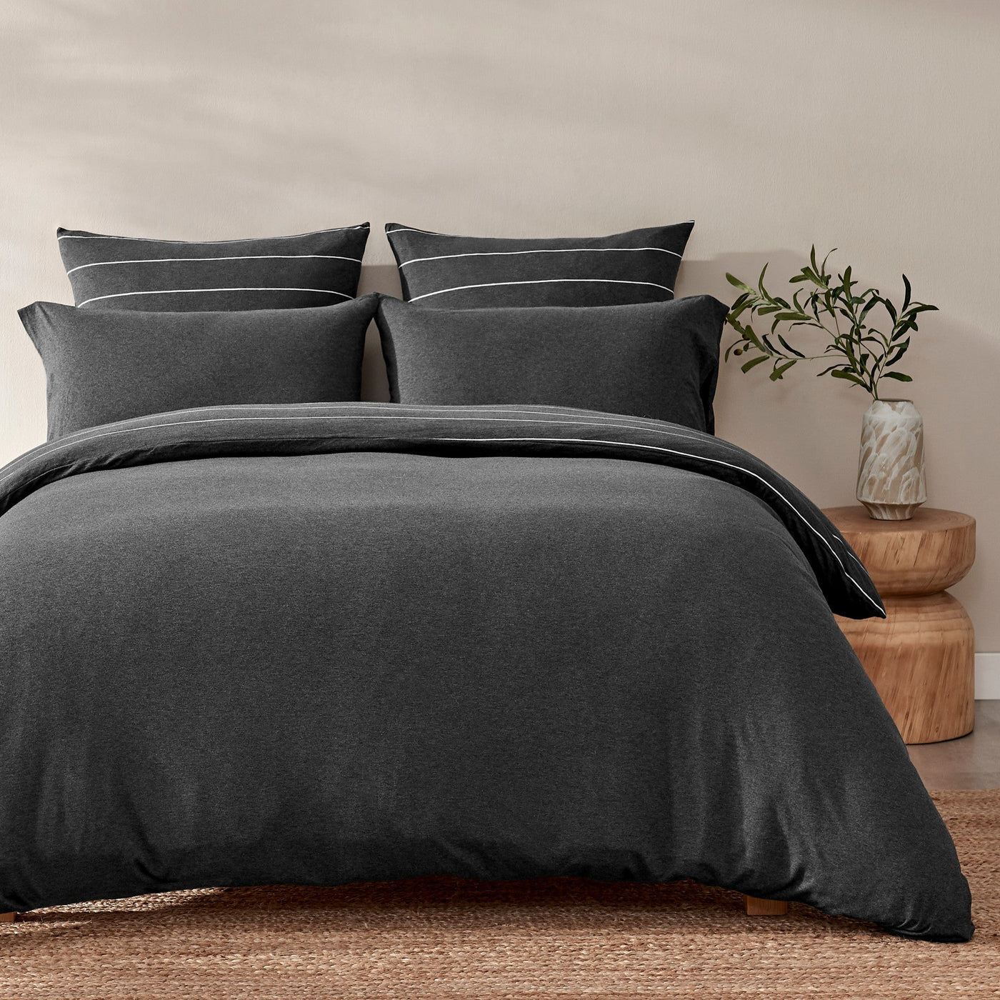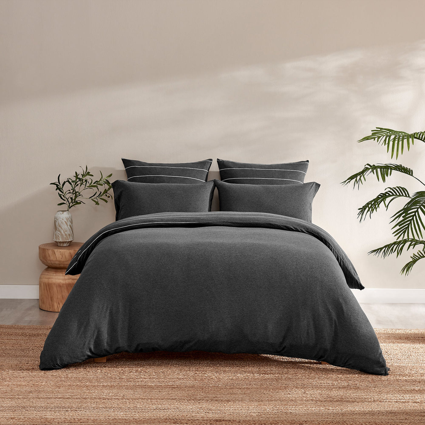Jersey Luxe 100% Cotton Reversible Quilt Cover Set Charcoal