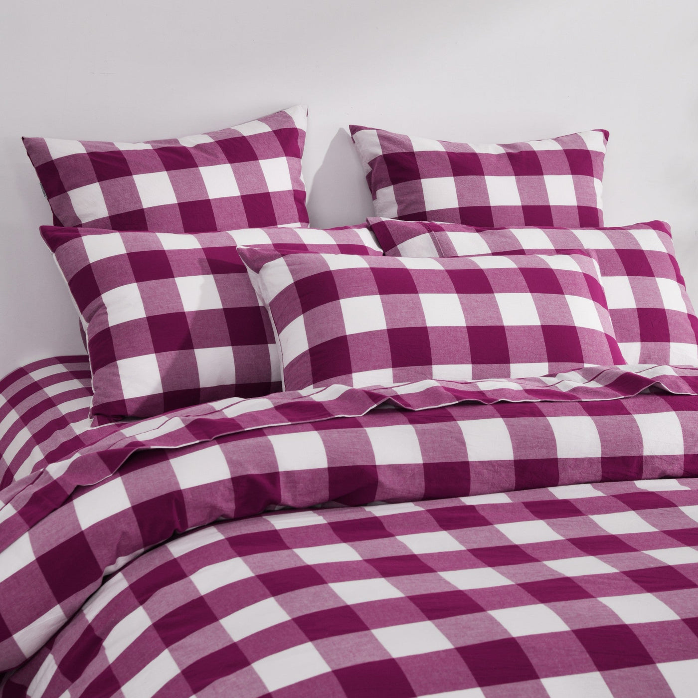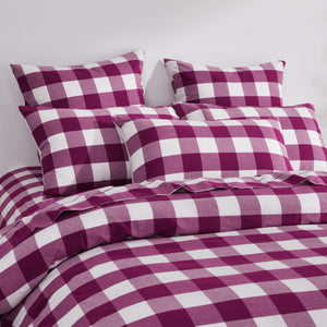 Remy Washed Cotton Yarn Dyed Check Euro Pillowcase Berry Twin Pack