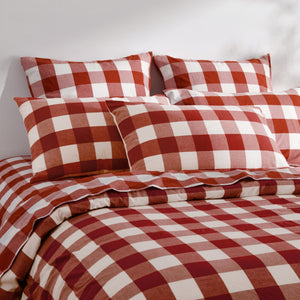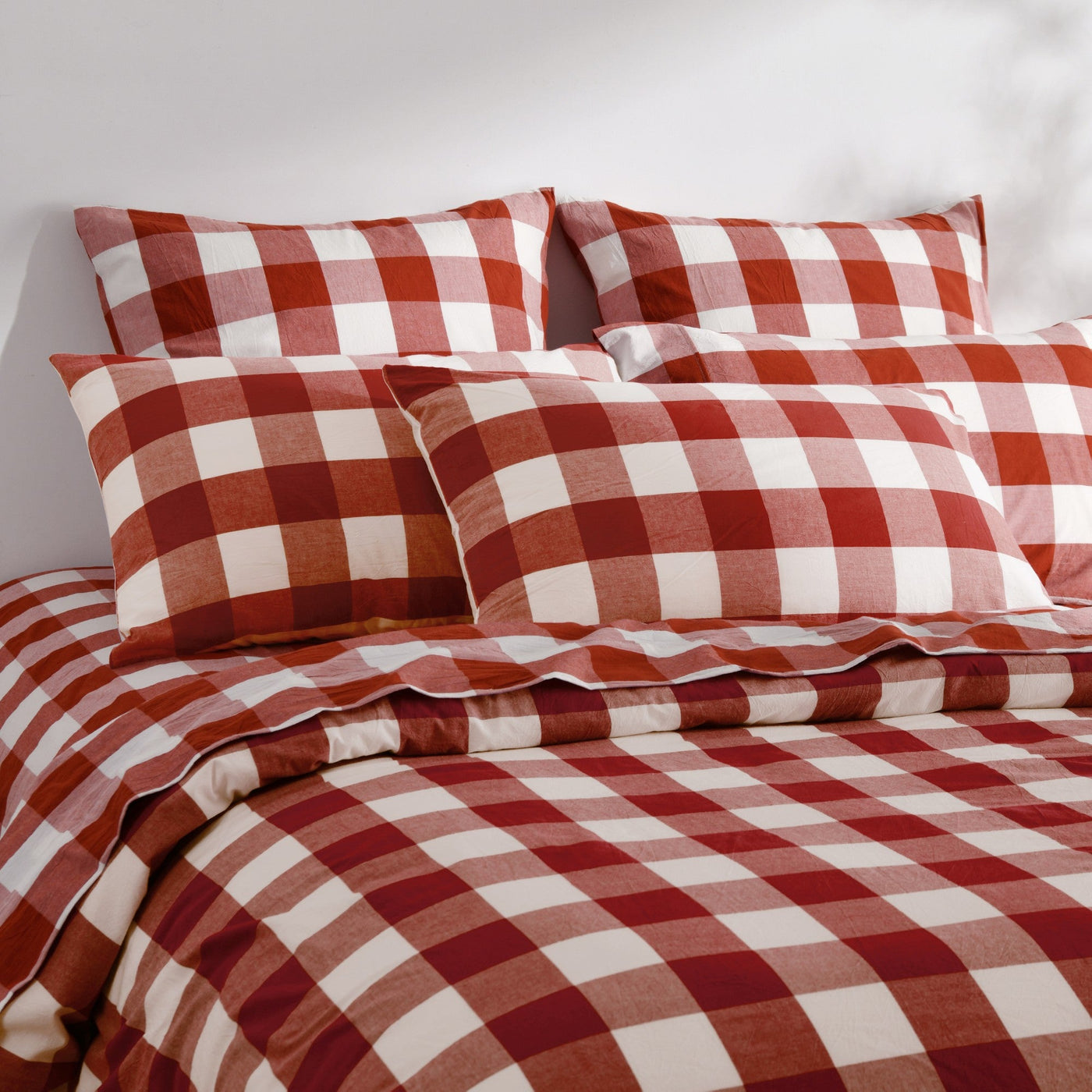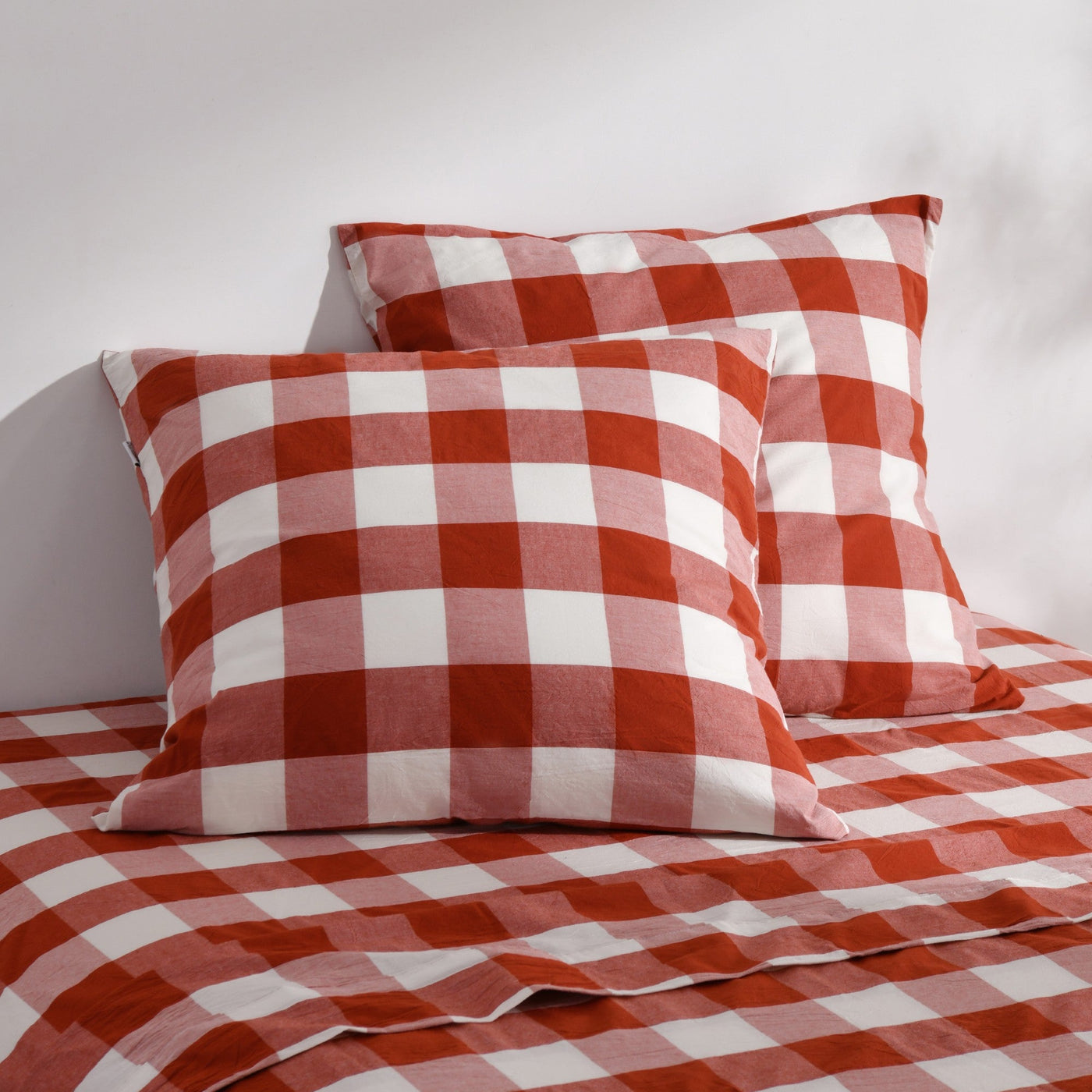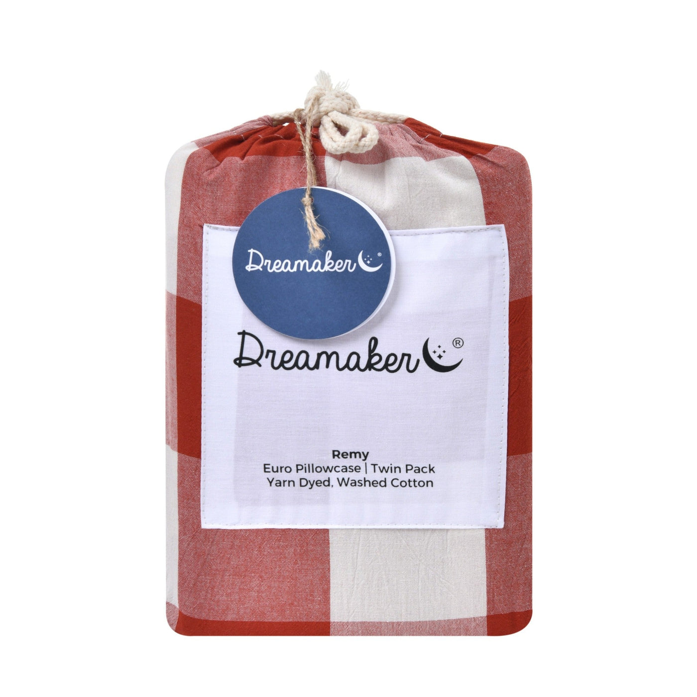 Bring rustic charm to your bedroom with the Dreamaker Remy Washed Cotton European Pillowcases in a twin pack. Made from pre-washed yarn-dyed cotton, our large gingham is woven to lock in rich colour and detail, while the washed cotton finish creates a lived-in, relaxed feel with a soft texture that only gets better with time.Features• Yarn-dyed cotton for long lasting colour• Woven giant gingham pattern• Ultra-soft, breathable washed cotton• Machine washable• Includes cloth bag for easy storage• OEKO-TEX certified - free from harmful substances• Mix and match our Washed Cotton bedding setsSizeEuropean Pillowcase - Twin Pack - 65 x 65cmMaterials100% washed cotton, yarn dyed.Care InstructionsCold gentle machine wash separately before use. Wash with similar colours. Do not bleach or soak. Line dry in shade. Warm iron on reverse if required. Do not dry clean.Designed in Australia.Made in China.