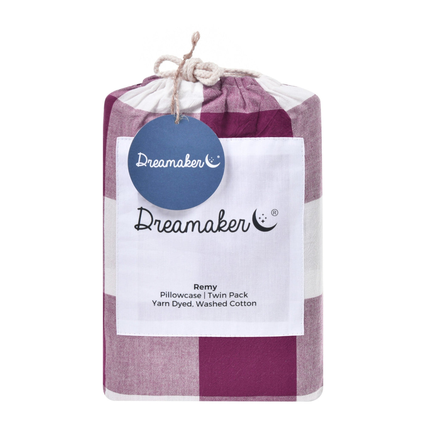 Bring rustic charm to your bedroom with the Dreamaker Remy Washed Cotton Standard Pillowcases in a twin pack. Made from pre-washed yarn-dyed cotton, our gingham is woven to lock in rich colour and detail, while the washed cotton finish creates a lived-in, relaxed feel with a soft texture that only gets better with time.Features• Yarn-dyed cotton for long lasting colour• Woven giant gingham pattern• Ultra-soft, breathable washed cotton• Machine washable• Includes cloth bag for easy storage• OEKO-TEX certified - free from harmful substances• Mix and match our Washed Cotton bedding setsSizeStandard Pillowcase - Twin Pack - 48 x 73cmMaterials100% washed cotton, yarn dyed.Care InstructionsCold gentle machine wash separately before use. Wash with similar colours. Do not bleach or soak. Line dry in shade. Warm iron on reverse if required. Do not dry clean.Designed in Australia.Made in China.