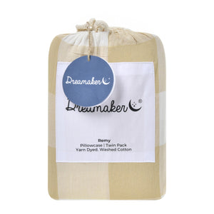 Remy Washed Cotton Yarn Dyed Check Standard Pillowcase Sand Twin Pack