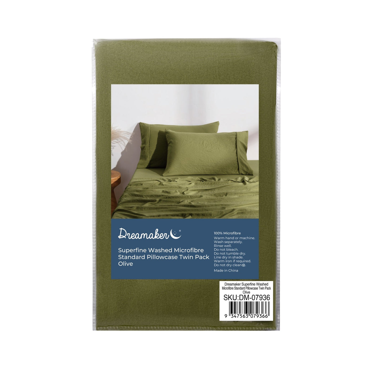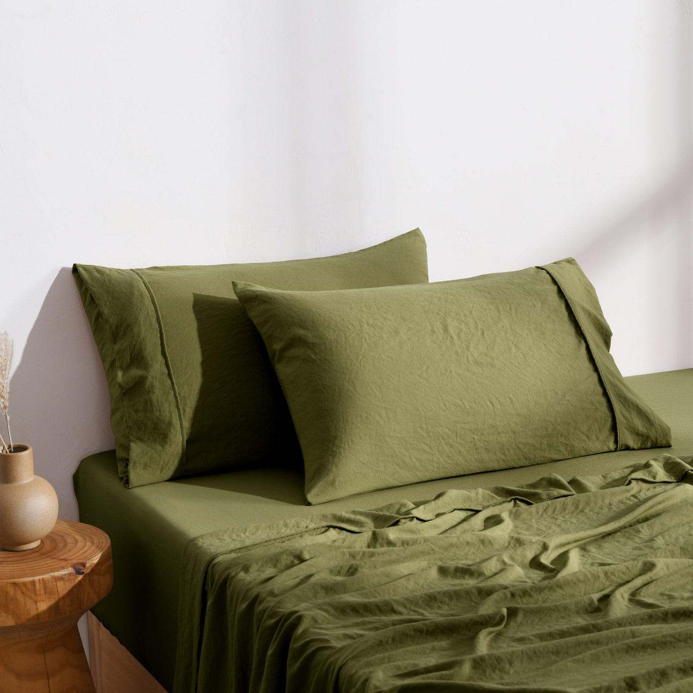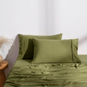 Superfine Washed Microfibre Standard Pillowcase Twin Pack Olive