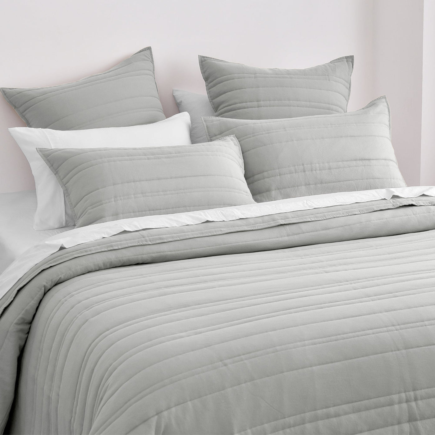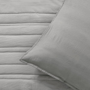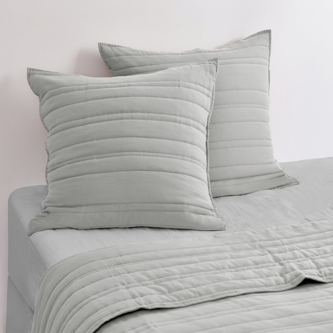 Superfine Washed Microfibre Stripe Quilted European Pillowcase Twin Pack Dove Grey