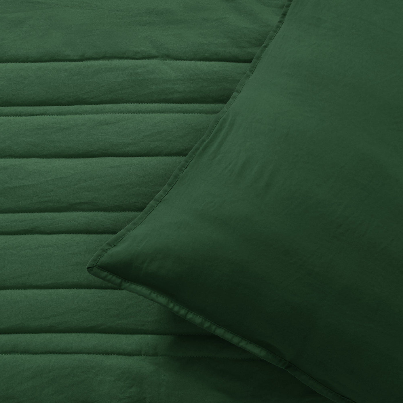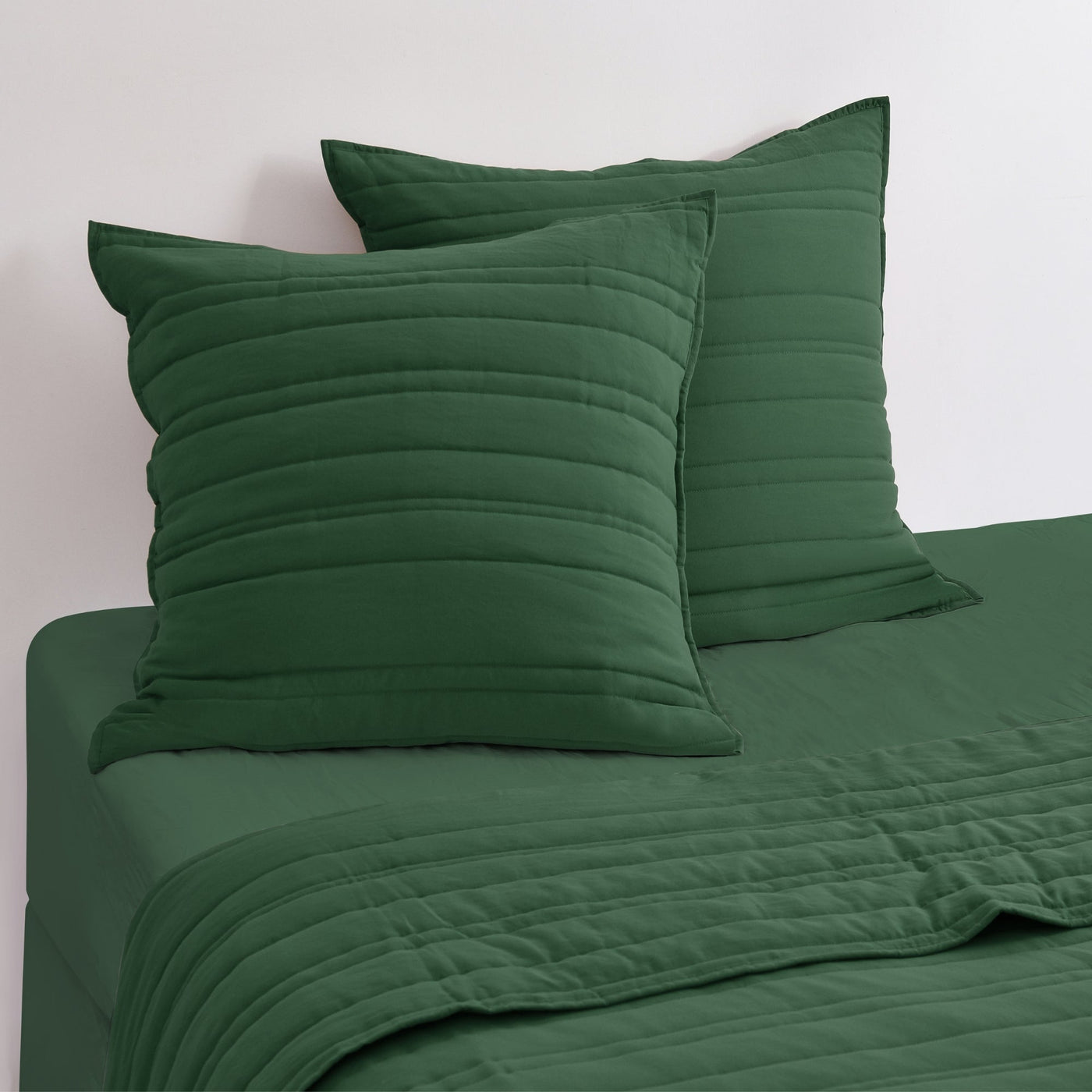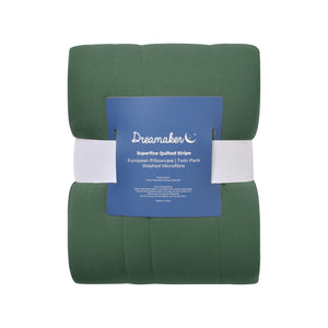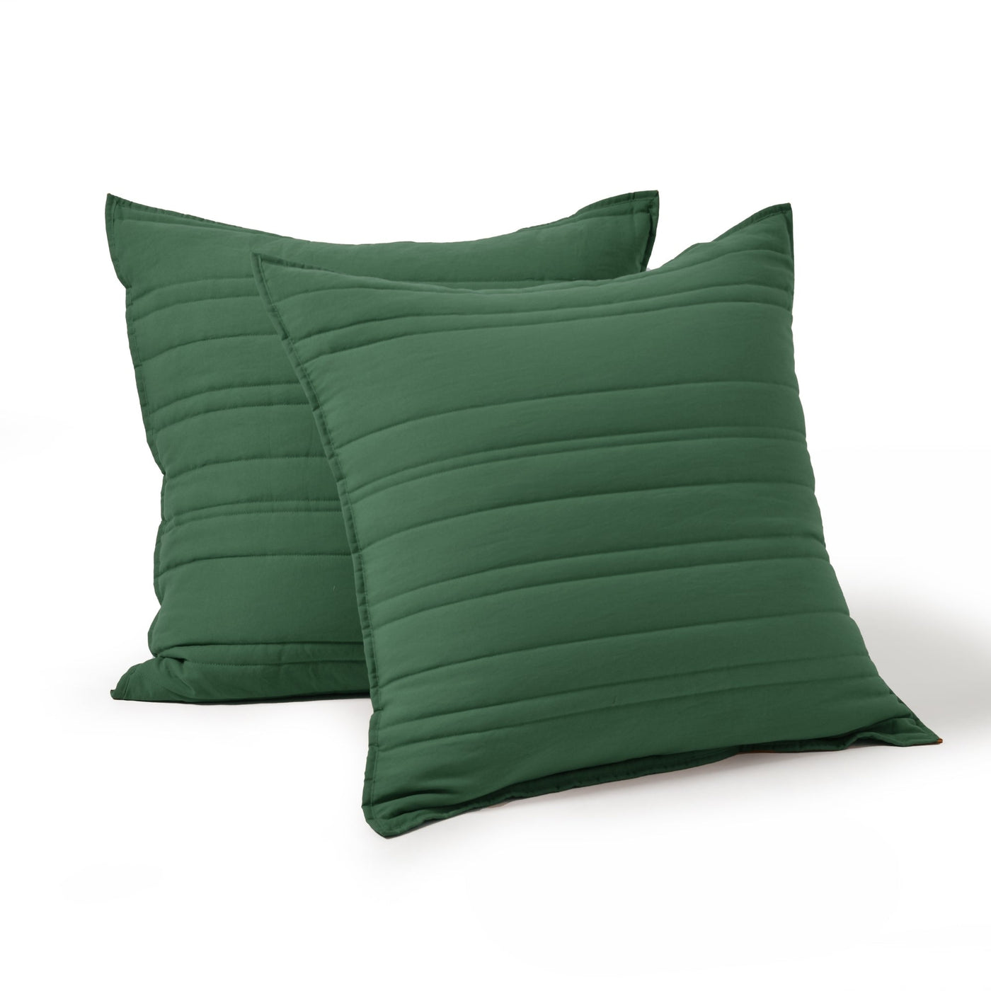 Superfine Washed Microfibre Stripe Quilted European Pillowcase Twin Pack Hunter Green