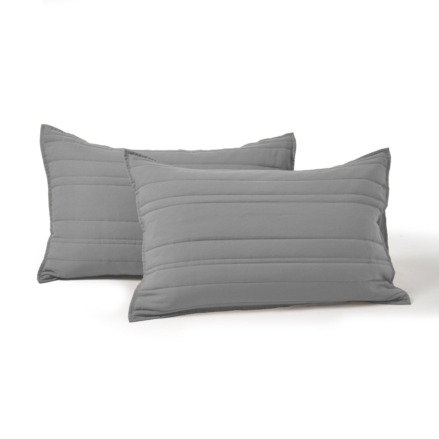 Superfine Washed Microfibre Stripe Quilted Standard Pillowcase Twin Pack Charcoal