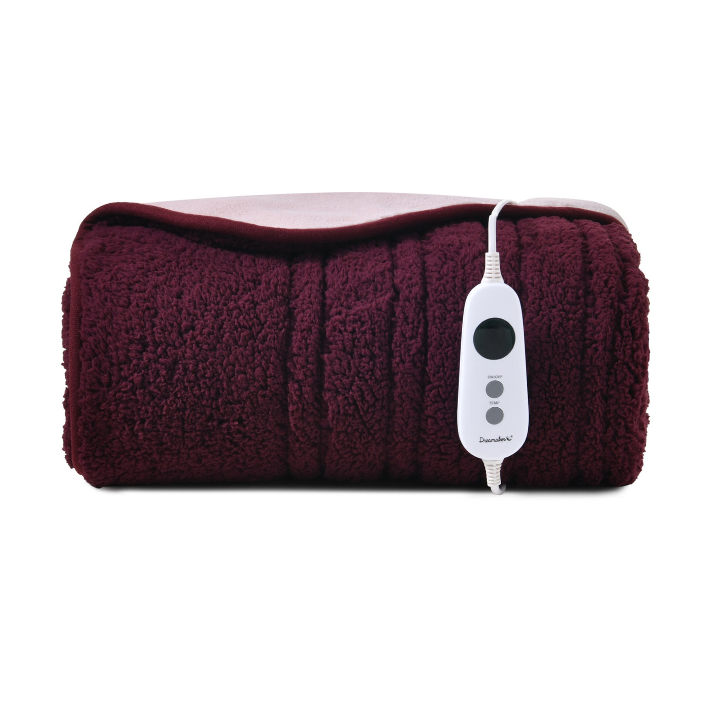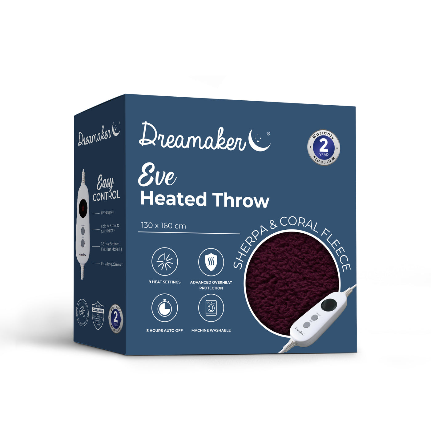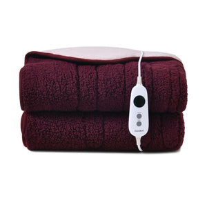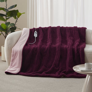 - Eve Reversible Sherpa & Coral Fleece Heated Throw Cherry & Blush