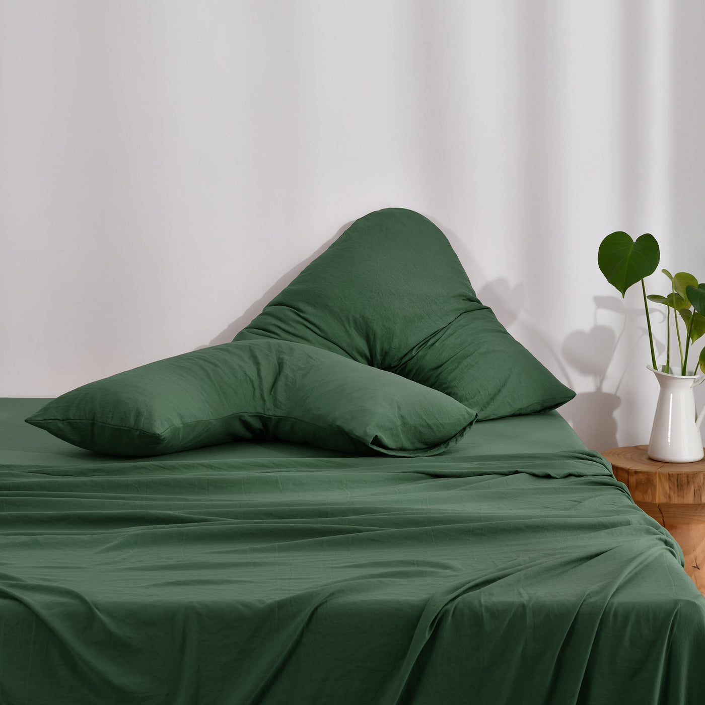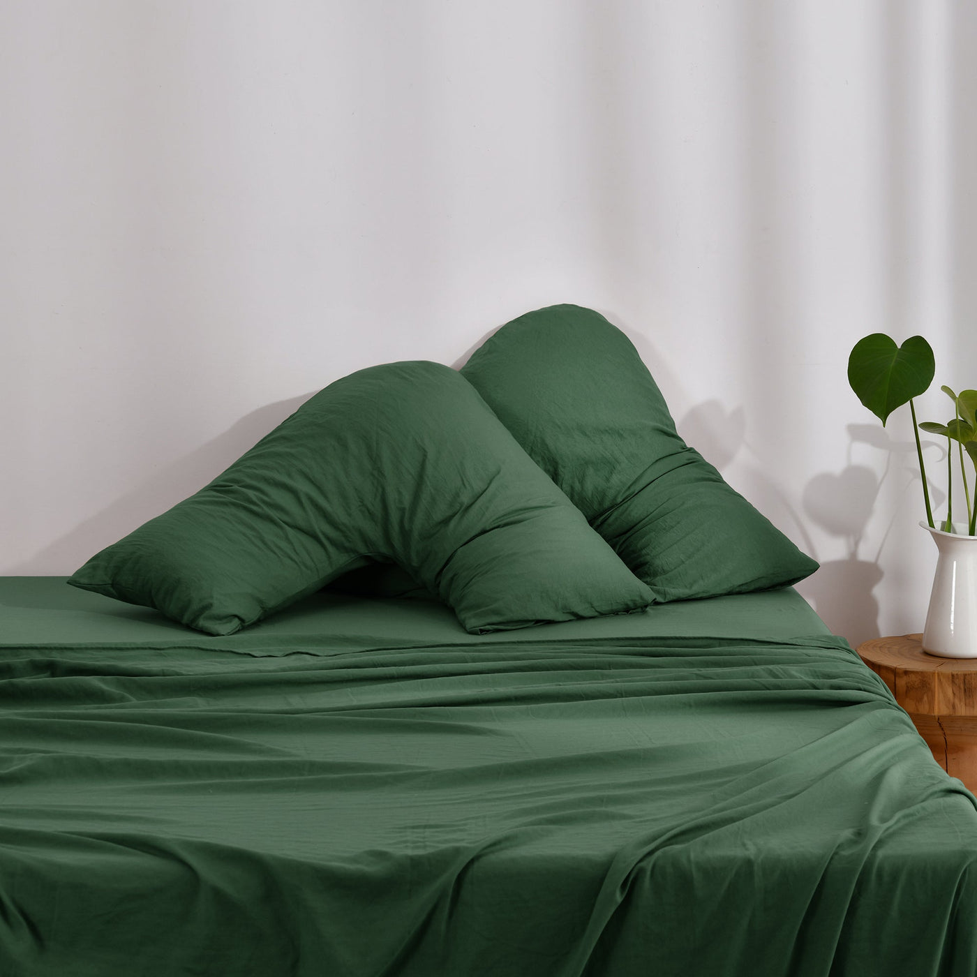 Superfine Washed Microfibre V-Shape Pillowcase Twin Pack - Hunter Green