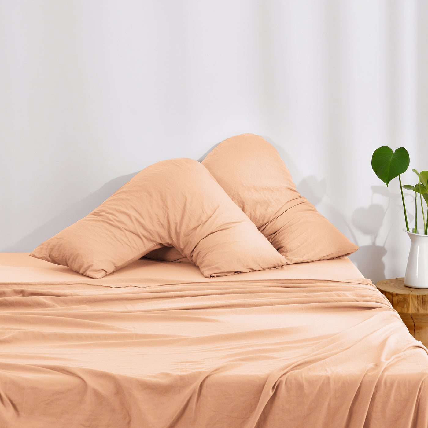 Superfine Washed Microfibre V-Shape Pillowcase Twin Pack - Peach